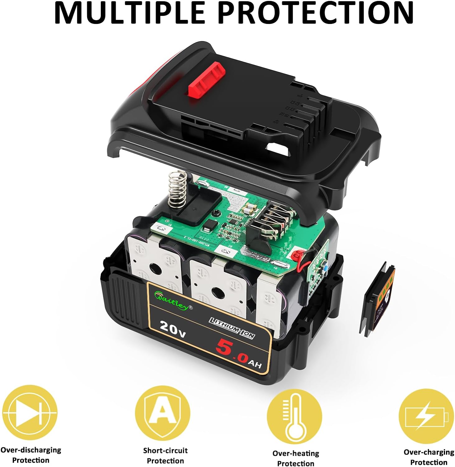 • Type:Li-ion | Voltage:20V | Capacity: 5.0Ah,replacement for DCB200 battery.