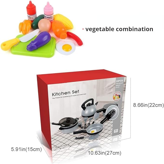 22 PCS Pretend Cooking Set, Kids Kitchen Toy with Play Food for Toddlers, Cookware Playset with Pots and Pans and Utensils, Kitchen Playset Accessories T58