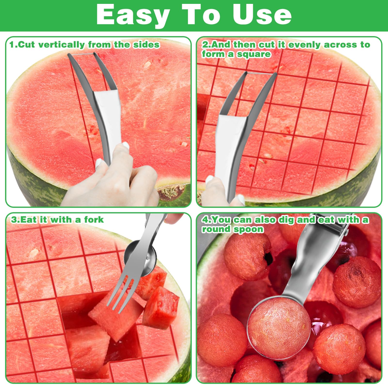 2Pcs Watermelon Cutter, Stainless Steel Watermelon Slicer 3-in-1 Fruit Slicer Portable for Home Party Watermelon Cutter Slicer Tool, Thicken Stainless Steel Fruit Cutter Watermelon Slicer Cutter Tool