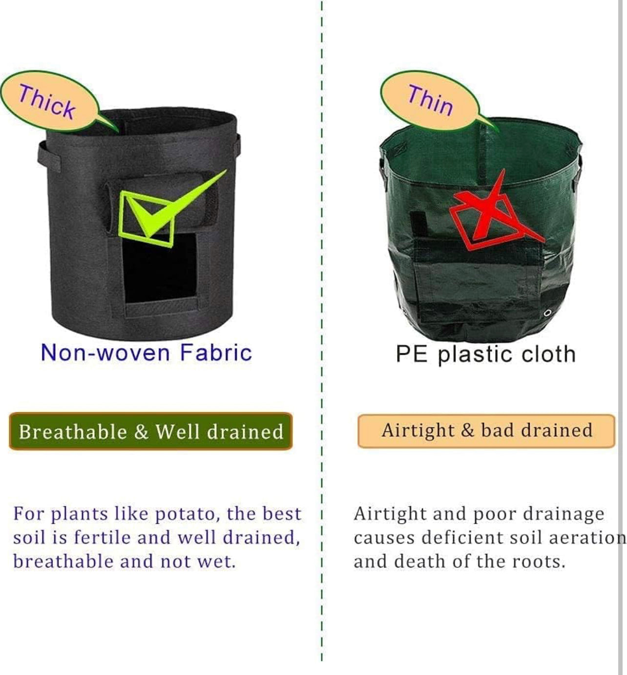 • 【Grow Healthy】High quality non-woven fabric can not only ensure the air circulation, let the roots get more oxygen to breathe freely, but also ensure that excess water can be quickly discharged, avoiding bacterial reproduction and root rot caused by excessive watering.