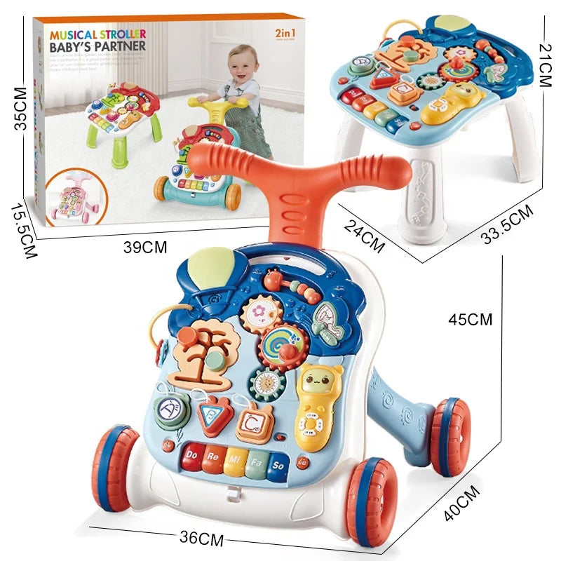 Sit-to-stand learning walker multi-function 5 in 1 baby activity table baby walker with light and sound