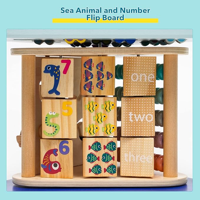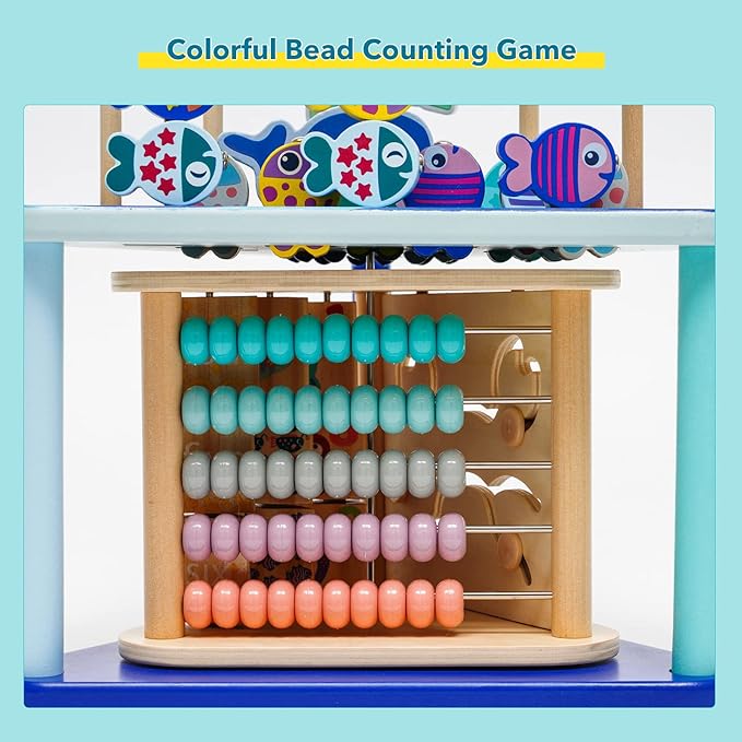 • 【5 IN 1 ACTIVITY CUBE】This activity cube is perfect for toddlers and young children as it offers a variety of activities including ocean maze game, fishing series, stacking series, abacus, spinning block, triangle spinning table. Great for developing motor skills and logic as well as learning colors, basic counting, shapes.