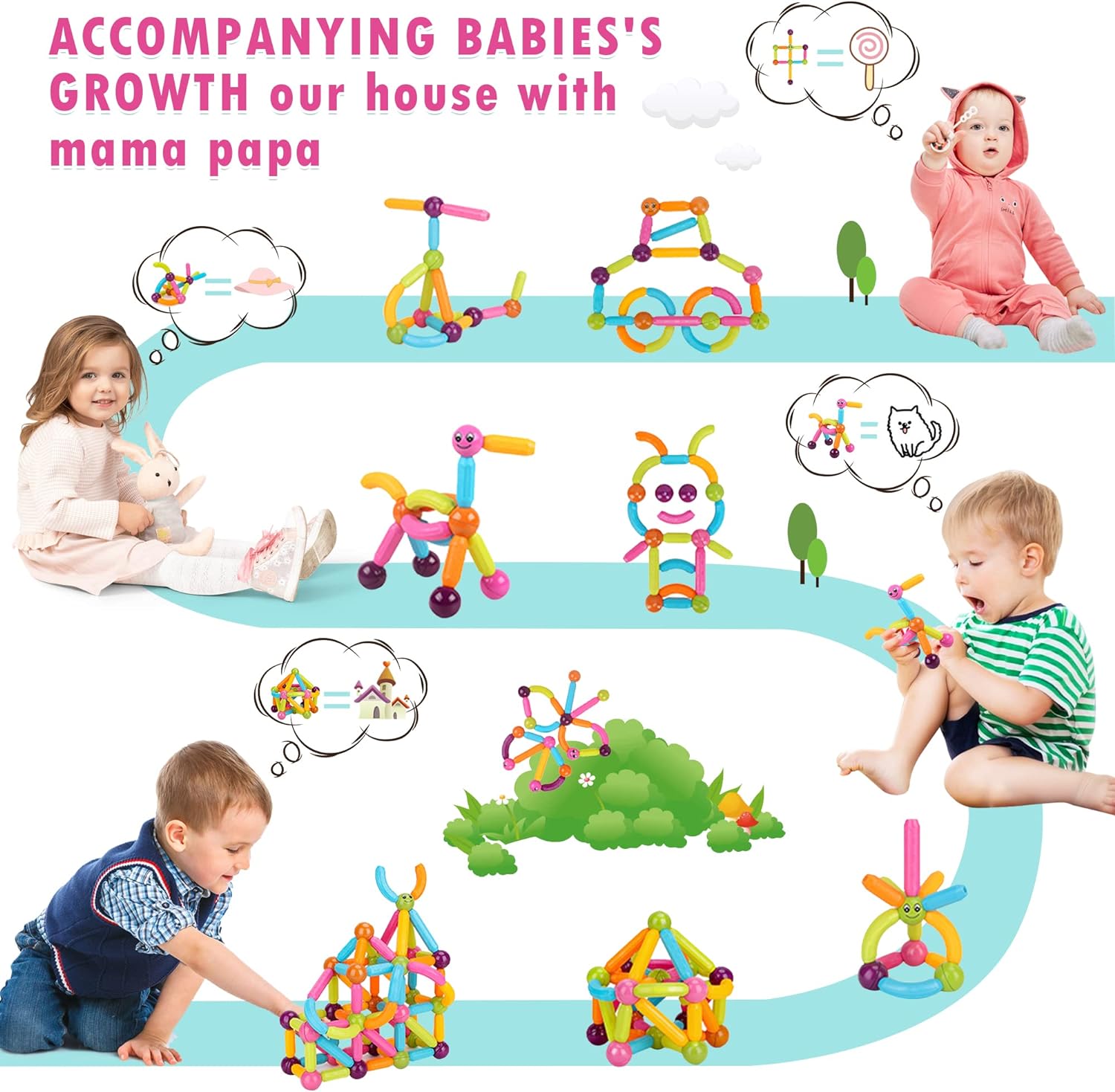 • 【STEM MAGNETIC BUILDING BLOCKS】This magnetic balls and rods set is designed for kids aged 3-8! The baby can assemble different shapes such as "house", "car", "dog","baby". In this process, magnetic toys can better develop the baby's hand-eye coordination, fine operation, communication ability, and the baby's imagination and creativity.