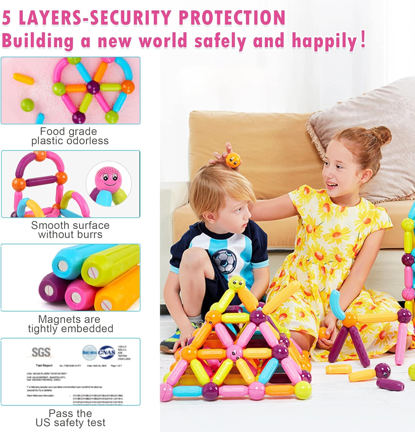 • 【DURABLE AND SAFE】 Hard food-grade ABS plastic and 3.5cm thickening diameter magnetic balls are used to prevent accidental ingestion and ensure the safety of the baby to a greater extent. Besides, magnetic toys set has passed the US cpc safety test.