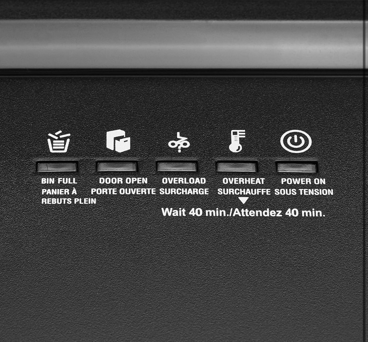 • Indicator lights for standby, overheat, overload, door open, and bin full; 5.7-Gallon pull-out waste bin for easy emptying