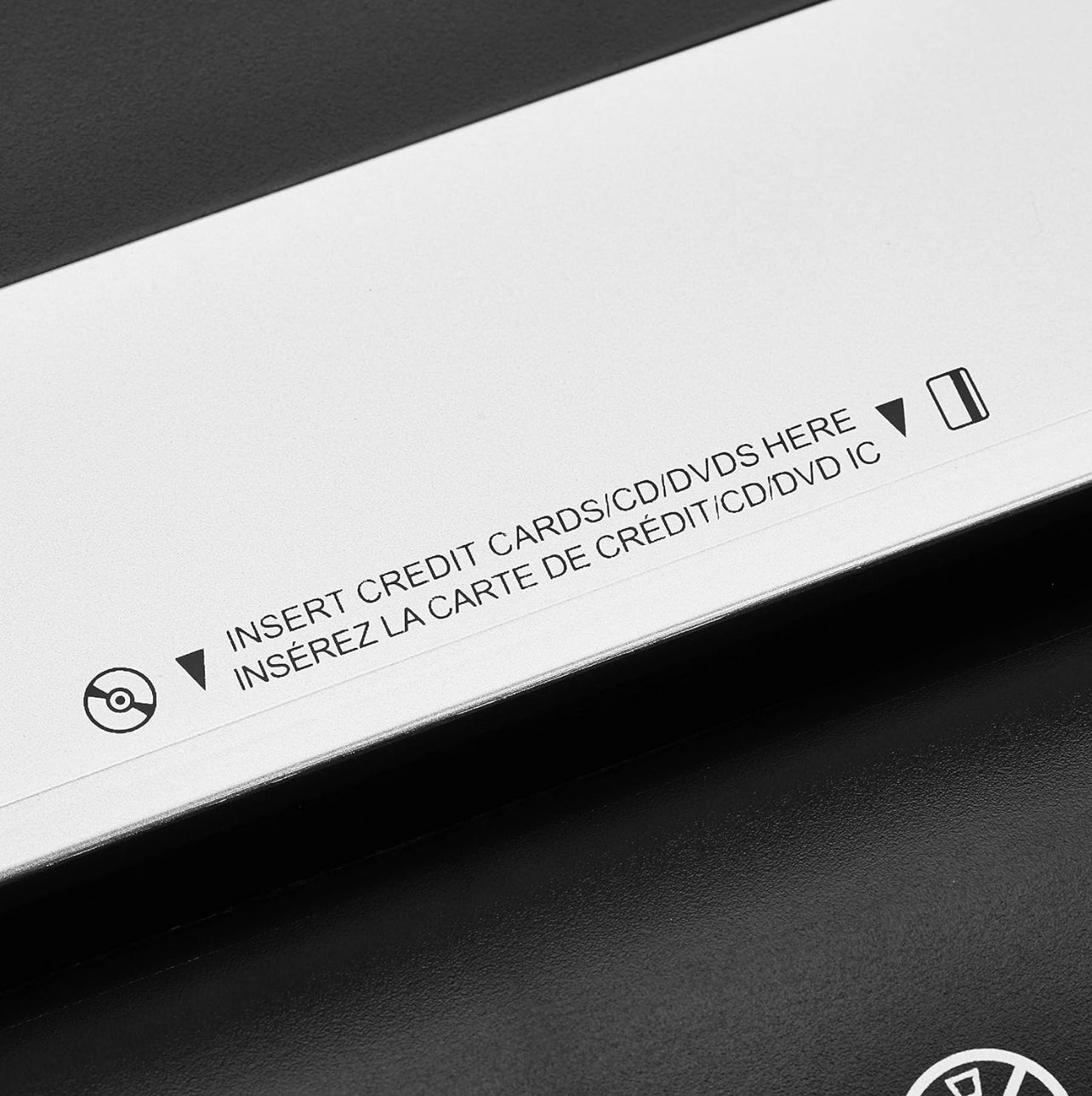 • High-security micro-cut paper shredder can shred 12 sheets of 20-pound-thickness paper at a time; destroys credit cards and CDs/DVDs