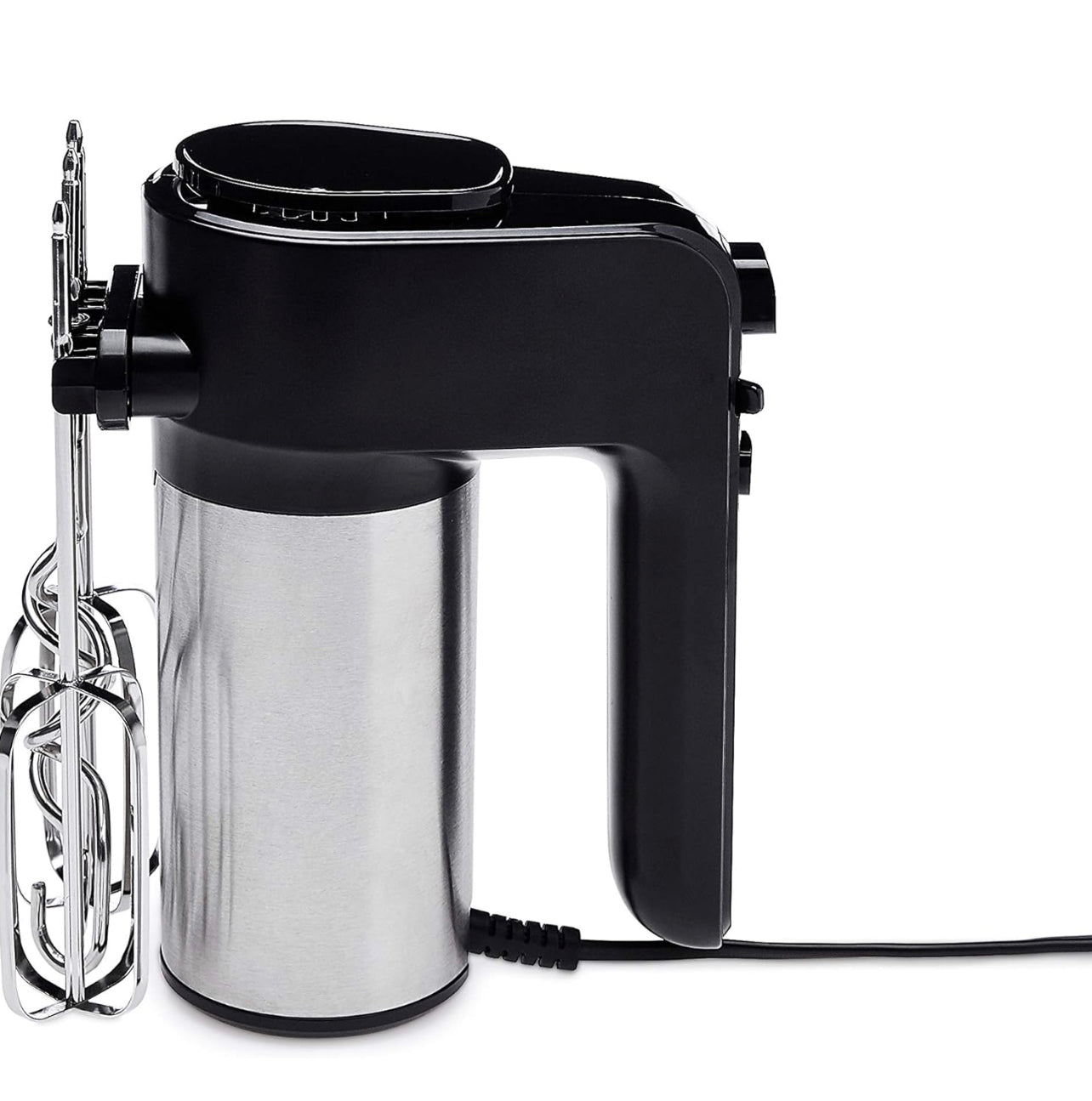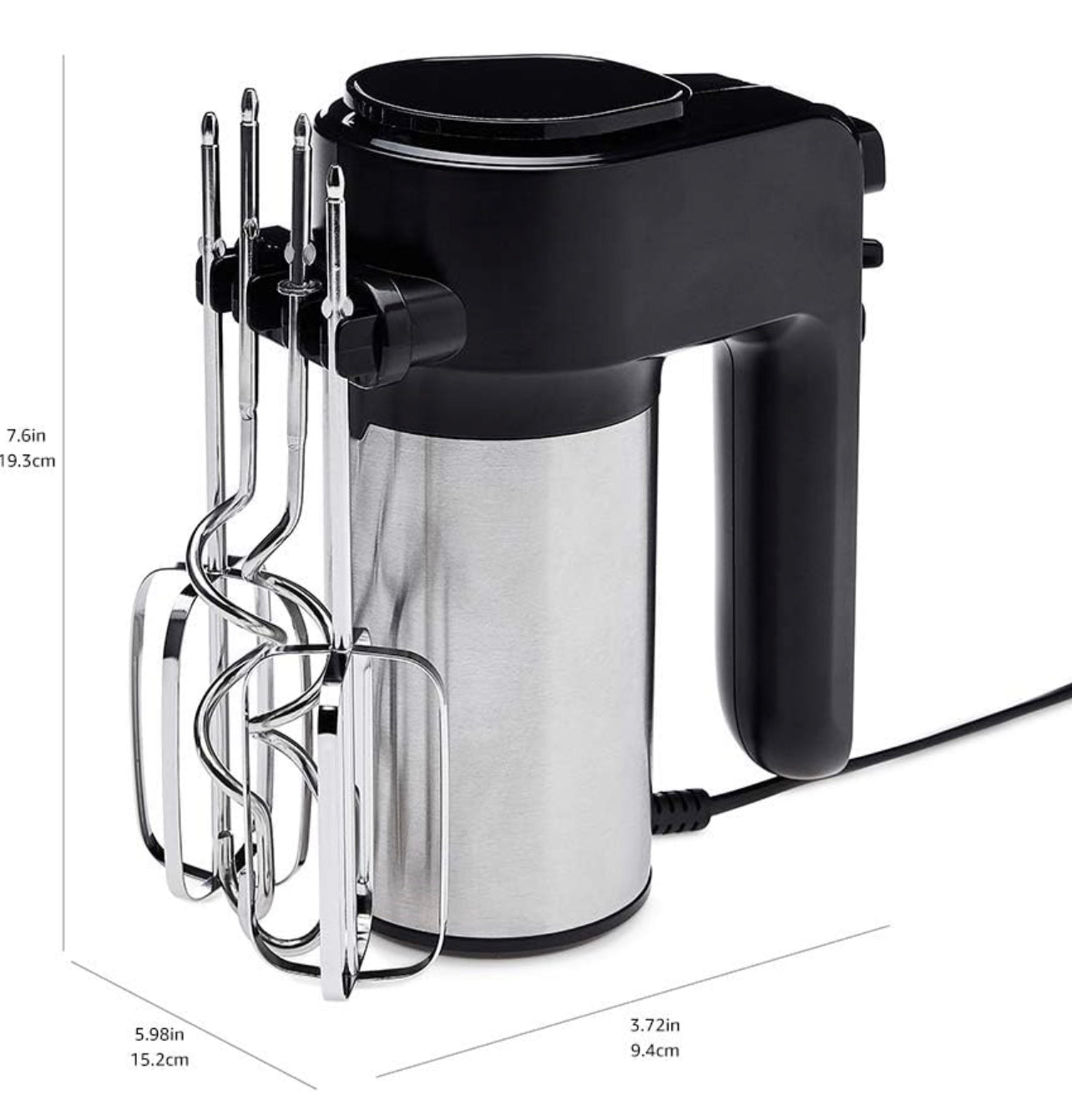 Amazon Basics 6-Speed Electric Hand Mixer with Dough Hooks, Beaters and Turbo Button, Black&Stainless steel