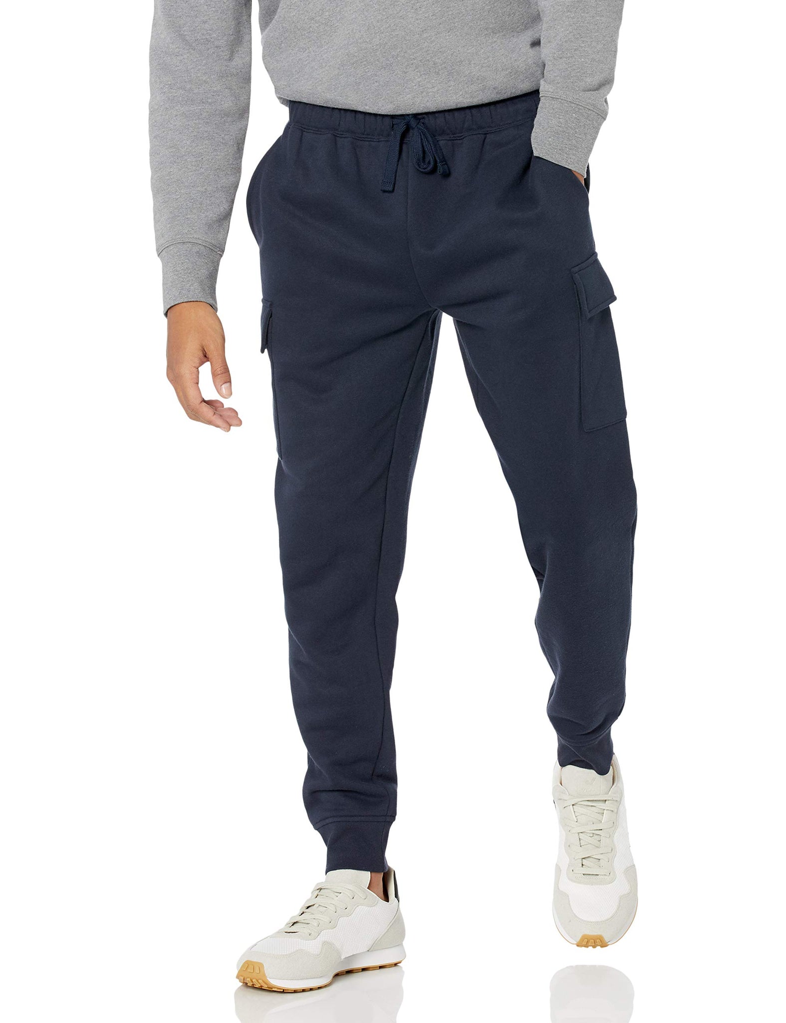 Amazon Essentials Men's Cargo Fleece Jogger Sweatpant, Navy, Large