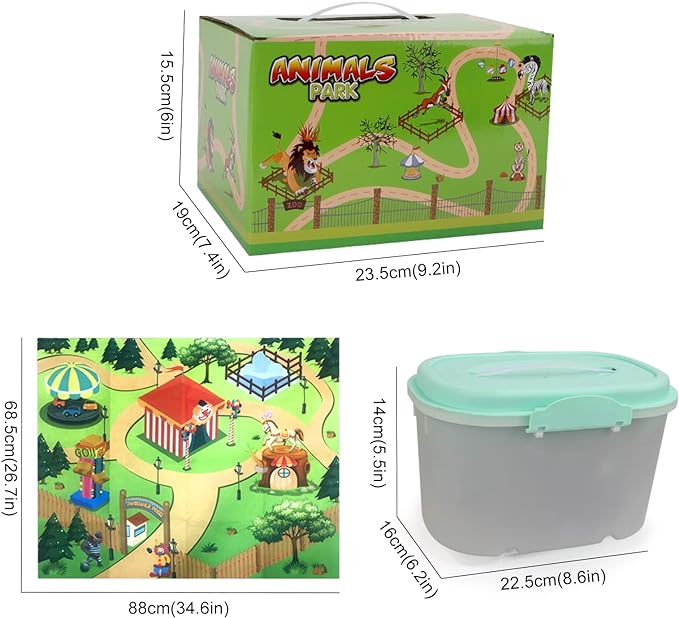 • Perfect gift - with gift boxed,wonderful for you kids.All zoo animals toys, play mat and trees can be stored in a handy storage case with handle.