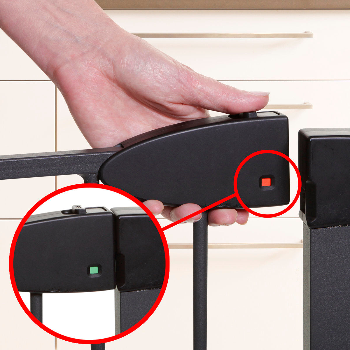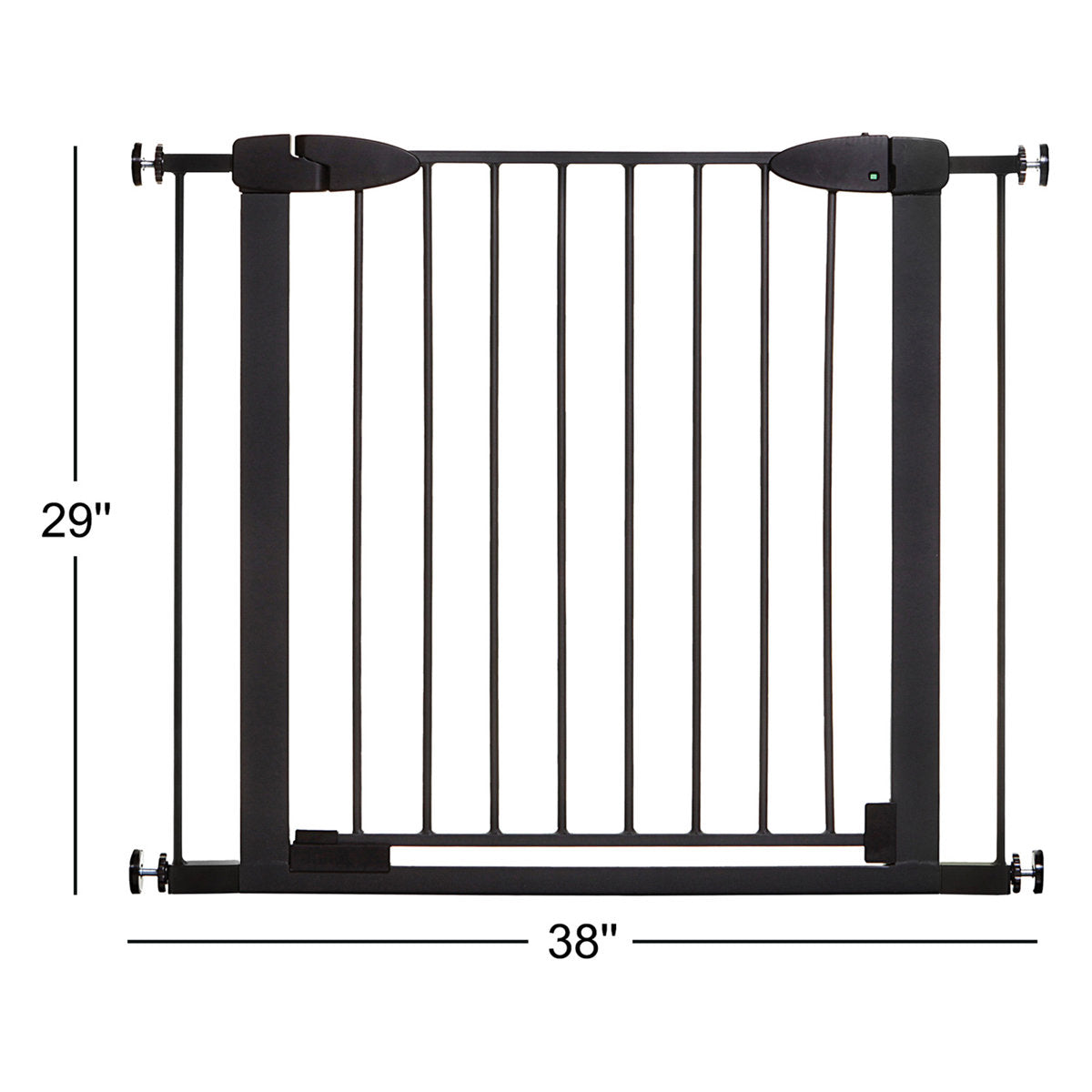 Dreambaby's Boston Auto Close Metal Safety Gate is a great tool to help you make your home safer for your little one. This versatile gate fits openings 29.5-38" wide, is 29" tall, and will quickly and easily install in a doorway, hallway or stairway. With the pressure-mounted installation, it’s easy to set up in any home and is especially great for temporary or rental properties. Using optional extensions, sold separately, it can accommodate openings up to 54.5.” With its one-handed operation, the gate door swings open in both directions but can easily be adjusted to swing in just one direction, making it ideal for placement at the top of the stairs (using the hardware mounting kit supplied). The magnetic auto-close feature automatically closes and locks the gate behind you from any distance, every time. For those times when your child is sleeping, you’re bringing in groceries, or entertaining guests, use the gate's smart stay-open feature to move around your home freely. Once the gate is installed, the EZY Check® indicator is a great tool to help ensure your gate is locked, installed, and functioning properly. Made of strong, high-quality materials it’s perfect for even the most eager pets.