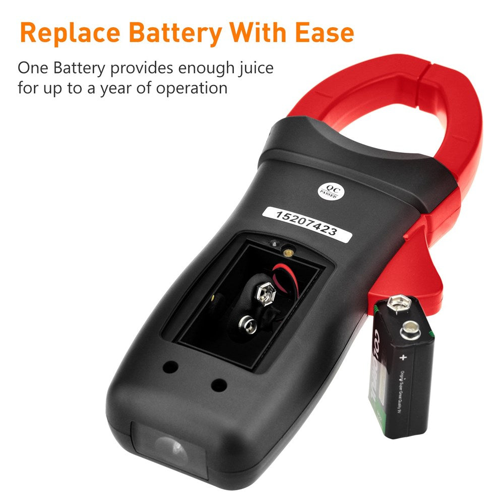 • ✅SAFE AND EASY TO USE - Overload protection on all ranges. Use this clamp amp meter for noncontact AC/DC ampere testing, Contactless amperemeter test for amperage, Avoid electric shock without touching any wires.