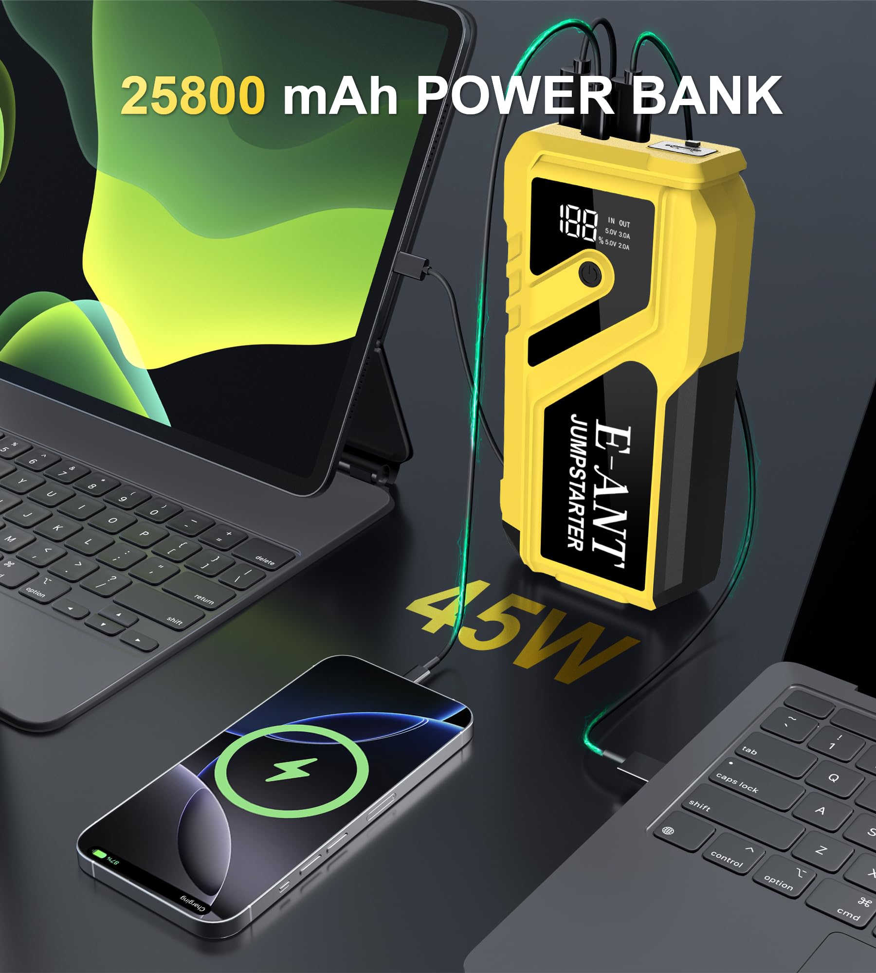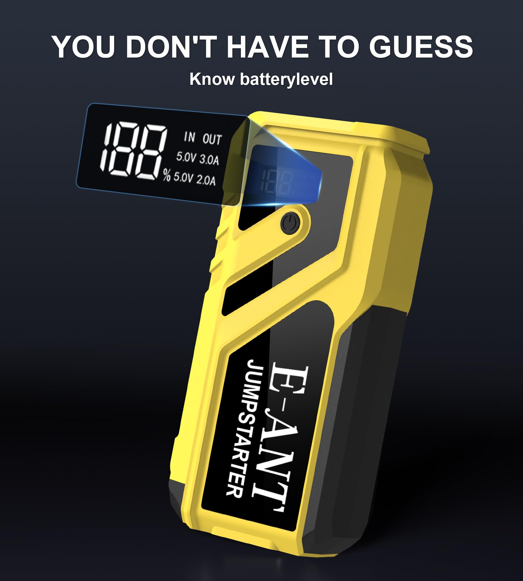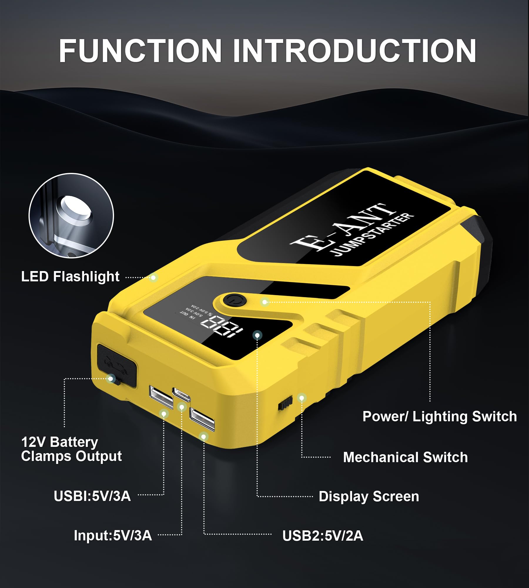 Car Battery Jump Starter 3000A Peak, 12V Jump Starter Battery Pack for Up to 8L Gas/5L Diesel, Battery Booster Jump Box, Power Bank USB QC3.0 Outputs Portable Charger, Jumper Cables LED Light Yellow