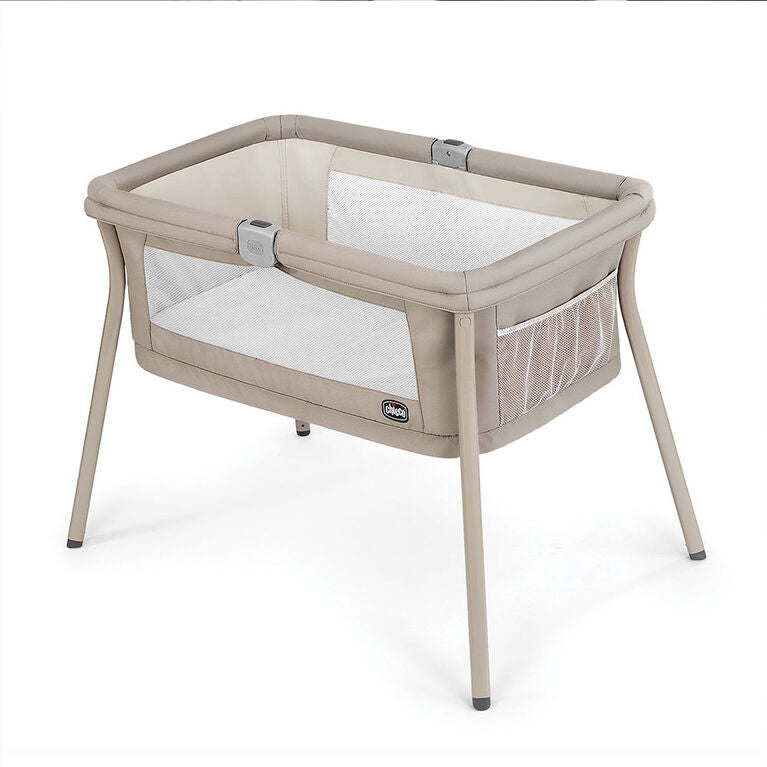 The Chicco LullaGo Bassinet creates a comfortable home-away-from-home with a sleek yet roomy design, breathable mesh side panels, and a padded mattress with a zip-and-wash cover. A convenient storage pocket keeps daily essentials close at hand. This sleek bassinet is built on a sturdy, streamlined frame that is also lightweight and portable.
