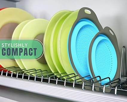 • 🄦 Collapsible Convenience: Save space in your kitchen cabinets! Our kitchen strainer collapses flat, making storage a breeze.