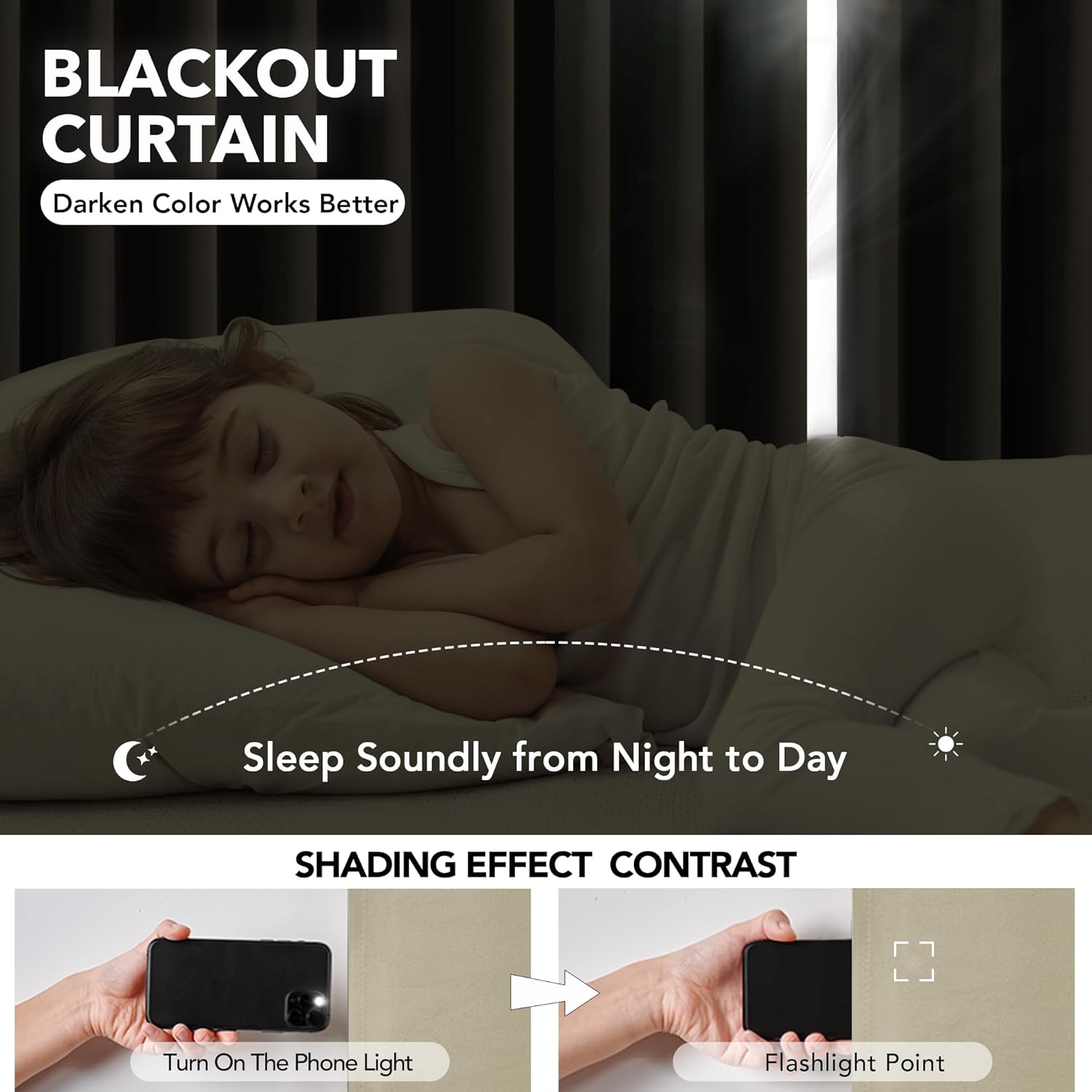 Deconovo Blackout Curtains,1 Panel, Beige, 52 W x 95 L Inch Long Curtain, Nursery