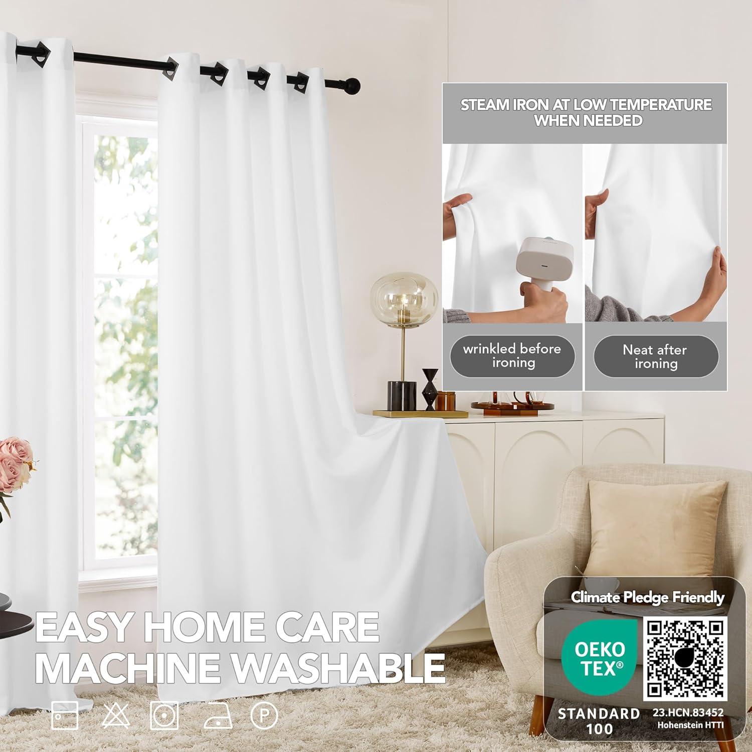 Deconovo Pure White 50% Room Darkening Curtains, Patio Door Blackout Curtains for Dining Room/Living Room/Bedroom, 52W x 84L Inch, 2 Panels