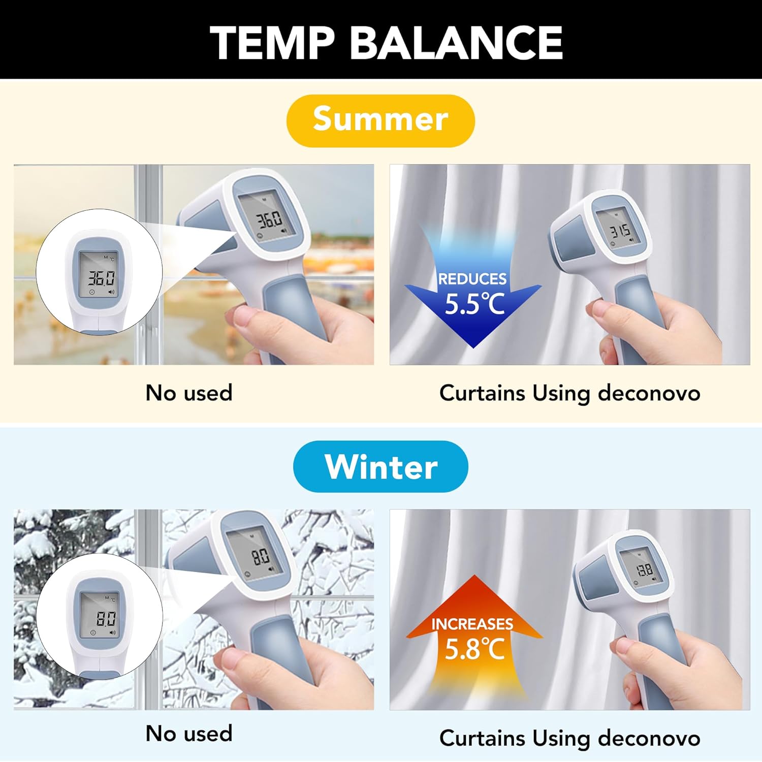 • Deconovo blackout curtain is thermal insulated, which prevents heat from escaping and reflects sunlight from entering the room.