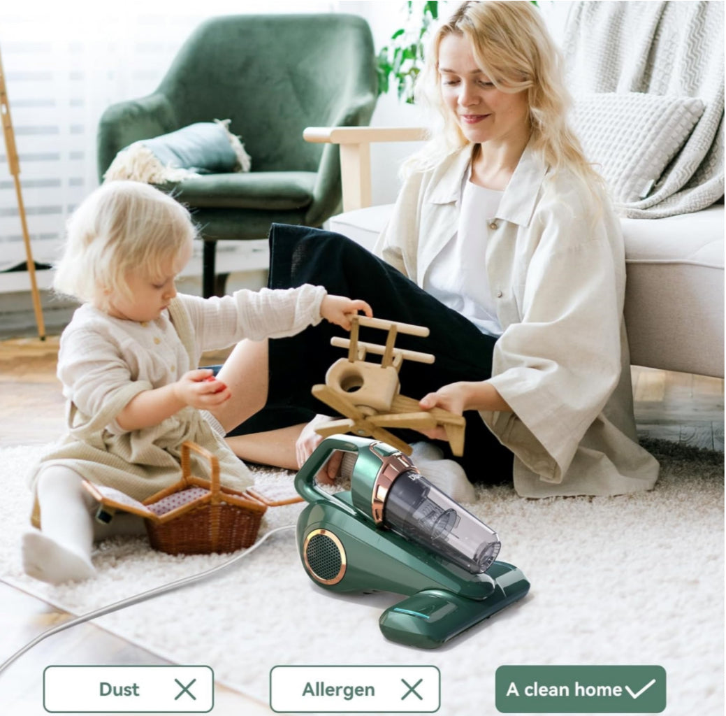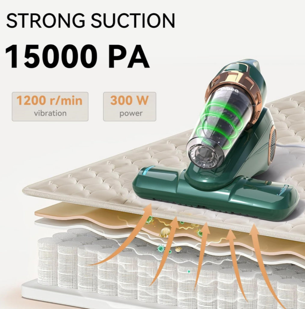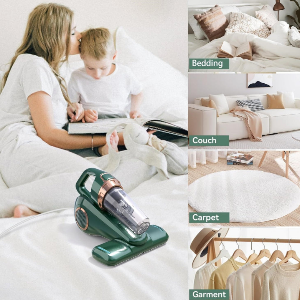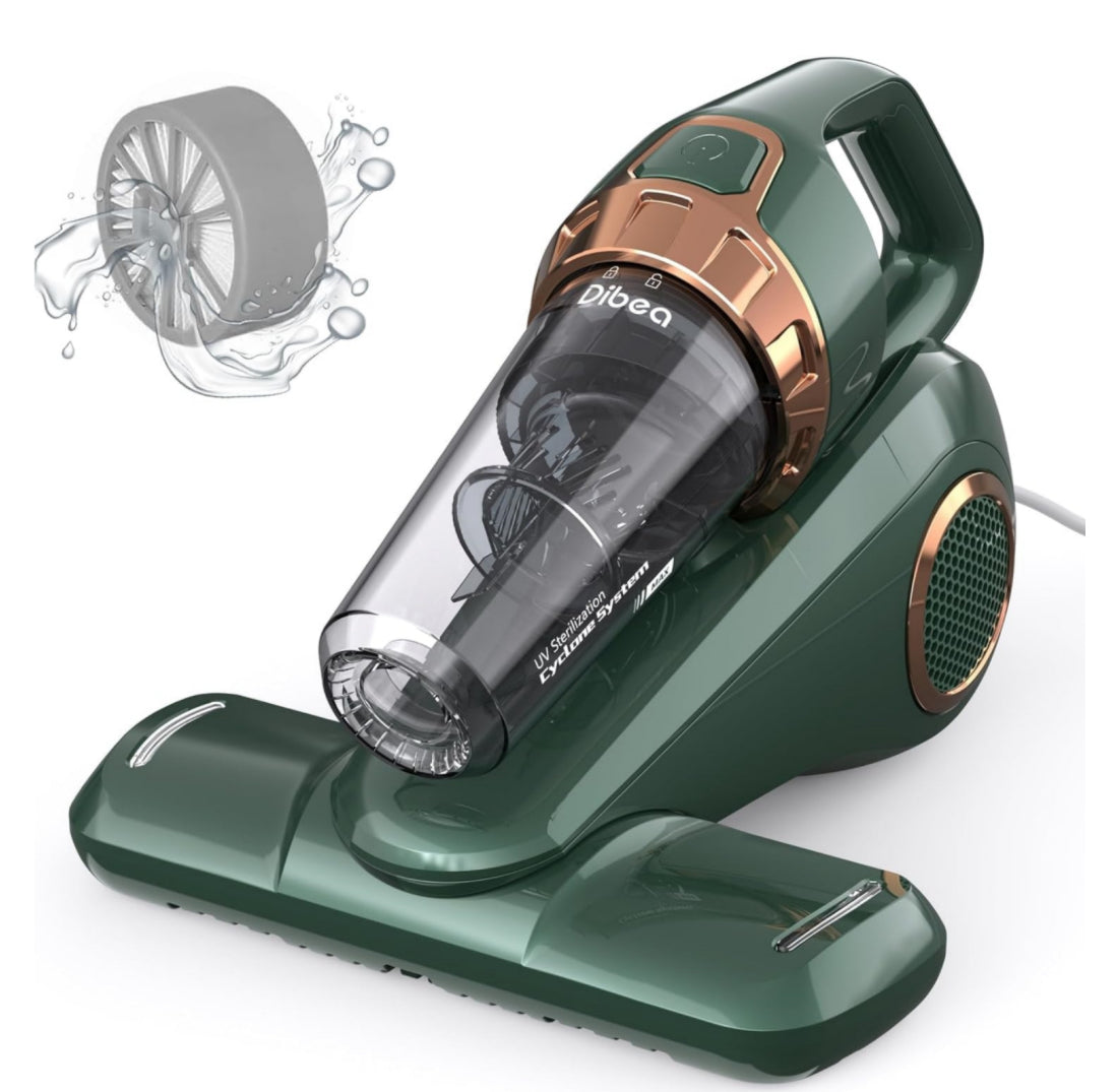 Dibea Handheld Bed Vacuum Cleaner, Mattress Vacuum Cleaner with 15KPa Suction, Washable HEPA Filter for Deep Clean Fur, Hair, Dust on Sofa, Couch, Carpet and Other Fabric, Green