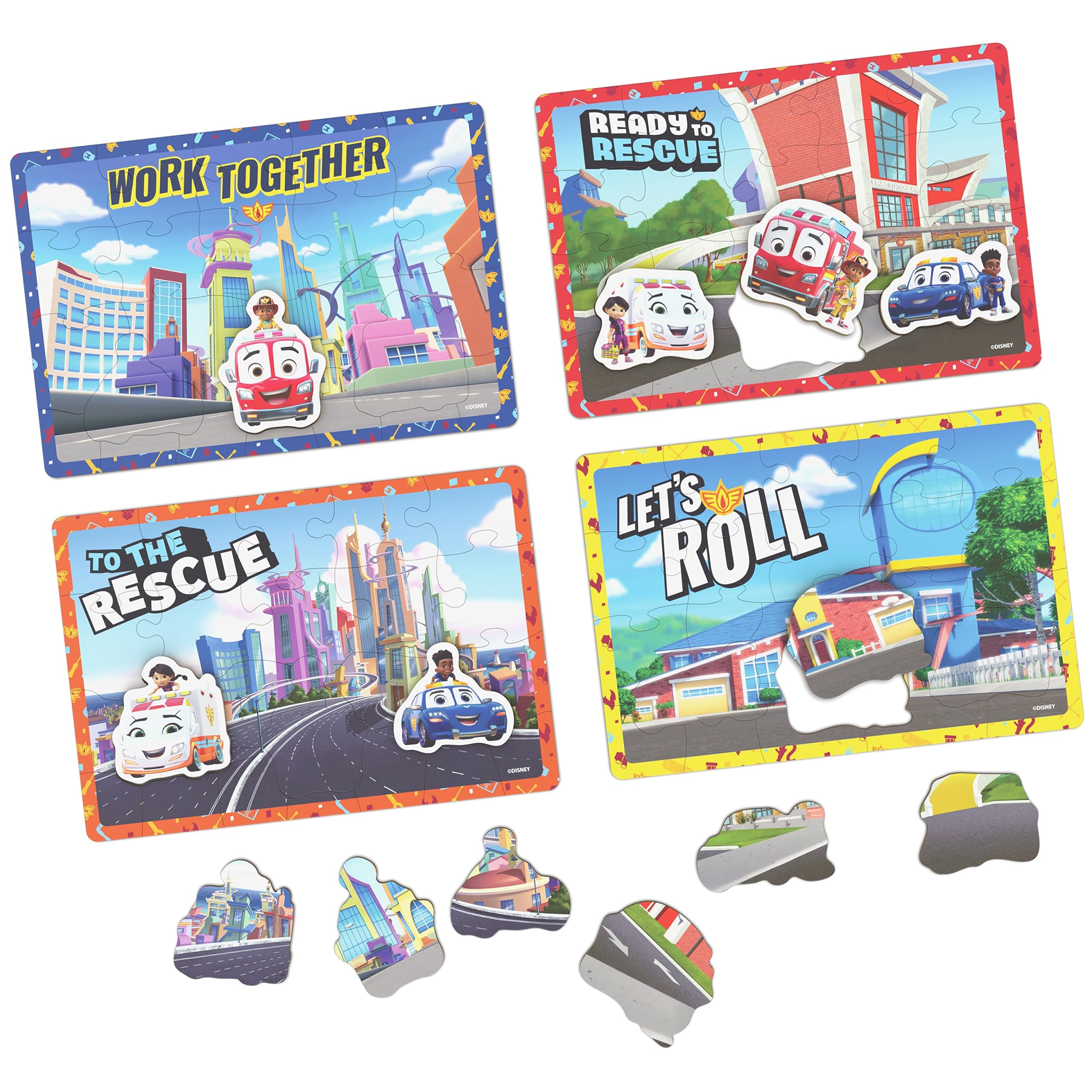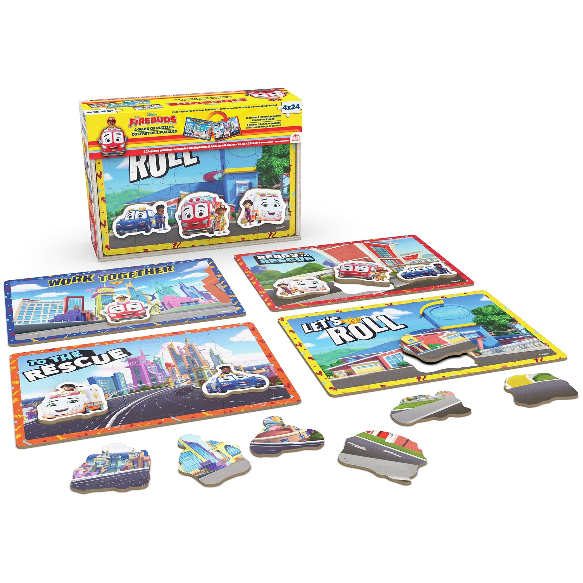 Disney Junior Firebuds 4-Pack of 24-Piece Puzzles for Kids Ages 4-8 with Interchangeable Characters- Bo, Flash, Violet- Kids Puzzles, Toys for Kids