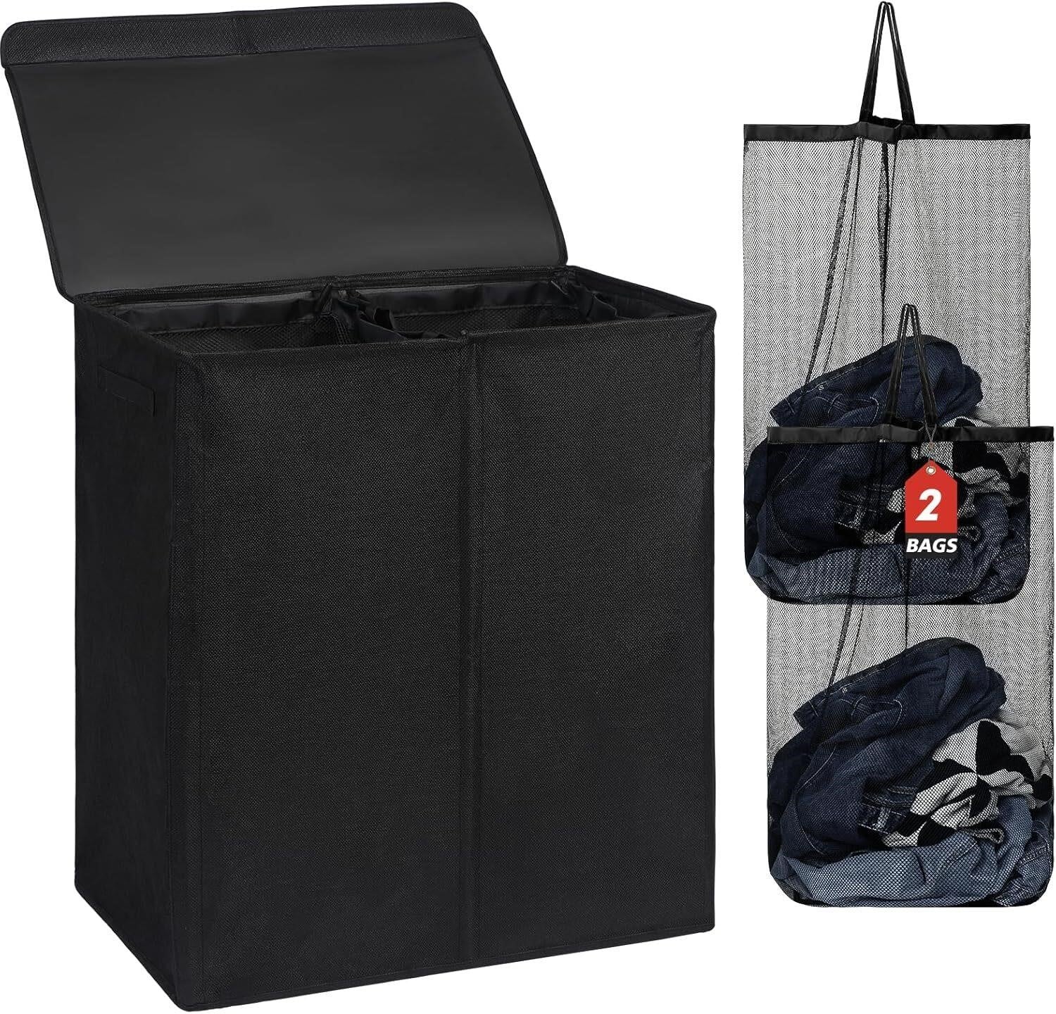 Dual Compartment Design: The laundry basket features two removable laundry bags for easy sorting and organizing of dirty clothes, ensuring a tidy setup