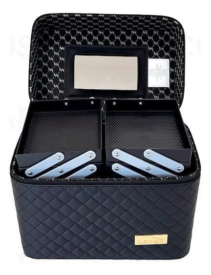 EALING 3-Layer Dual Side Tray Vanity Cosmetic Bag with Mirror For Women