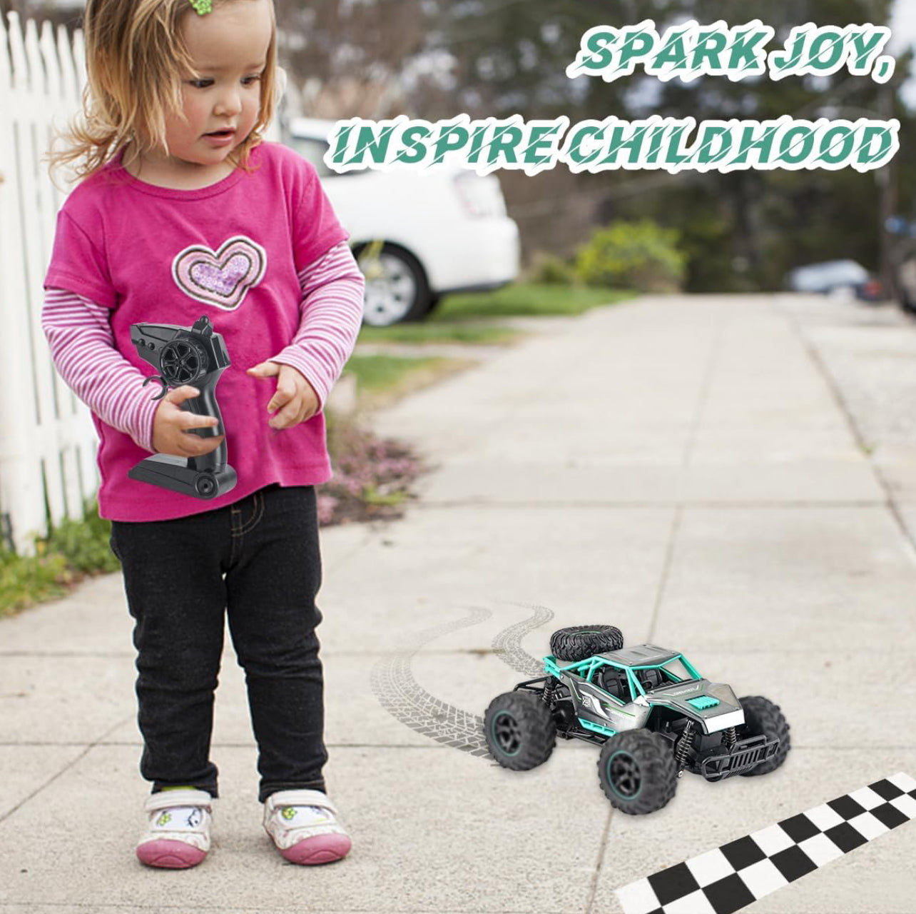 - 1:12 Remote Control Car, 4X4 Off-Road RC Monster Truck for Kids, 30km/h High Speed RC Truck with Colorful LED Light, Gifts for Boy Age 6-12 or Adults (Green)