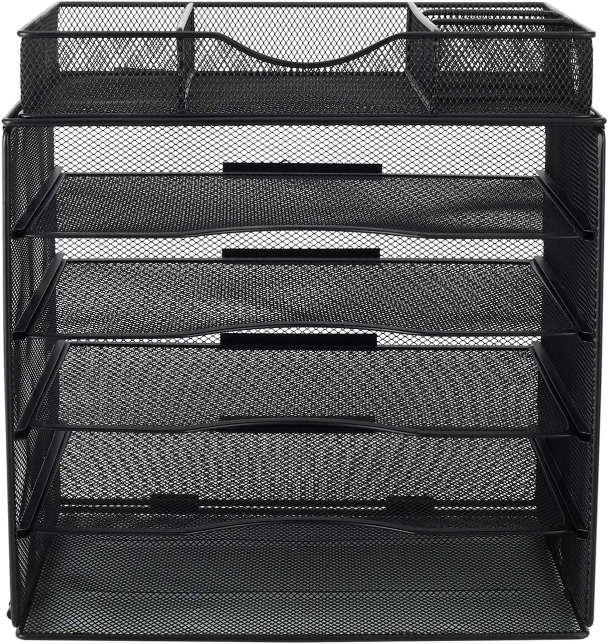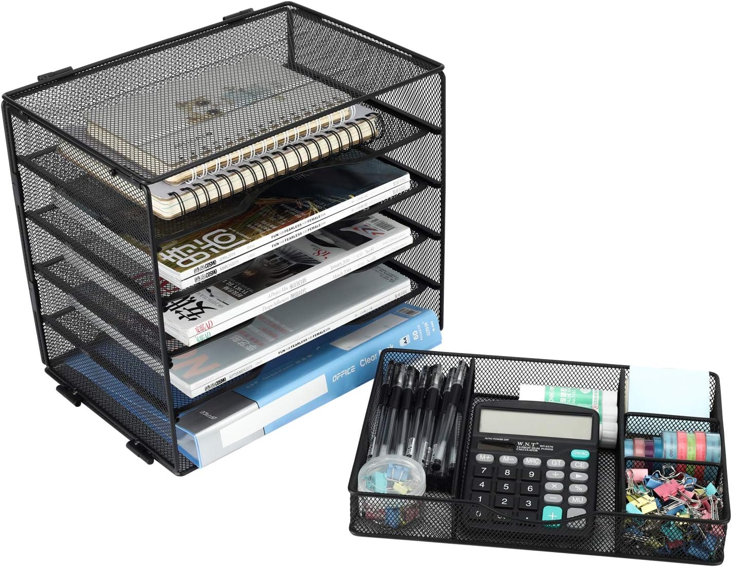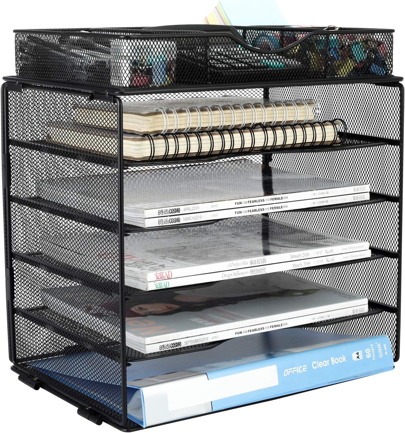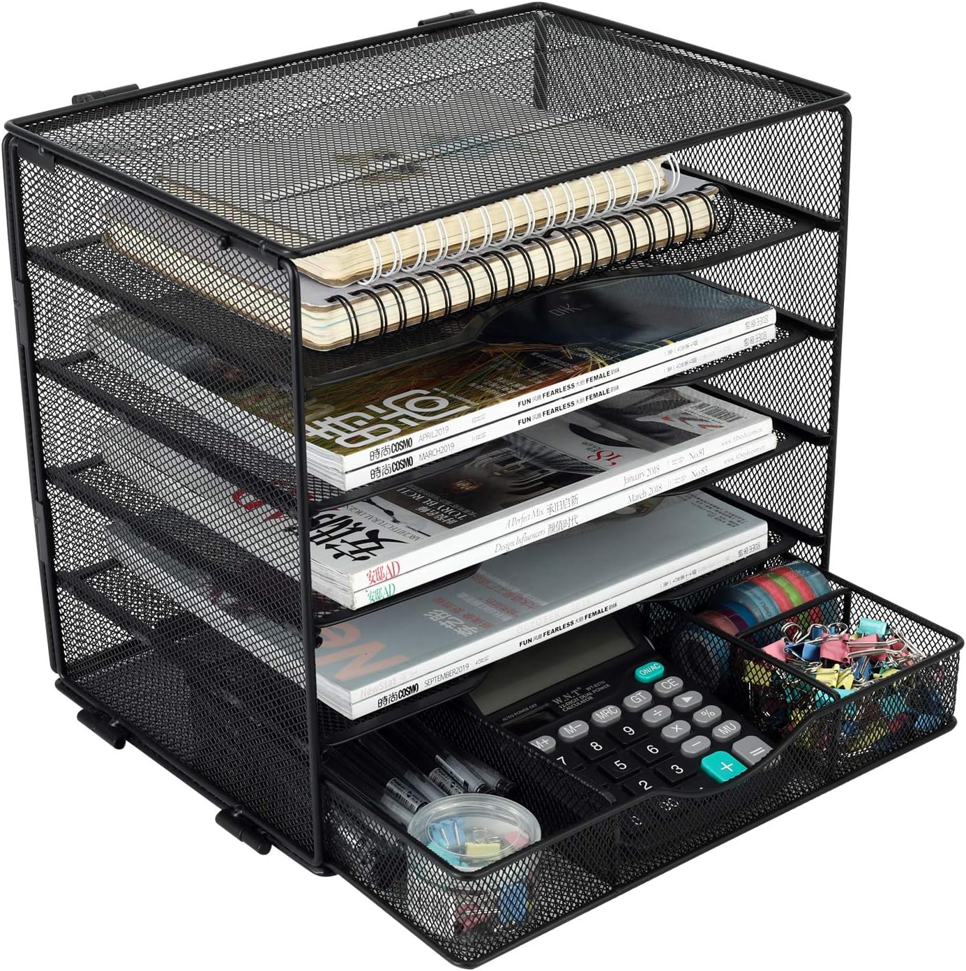 EasyPAG Desk File Organizer 5-Tier Mesh Desk Organizers and Storage Desk Accessories with Drawer Paper Tray Organizer,Black