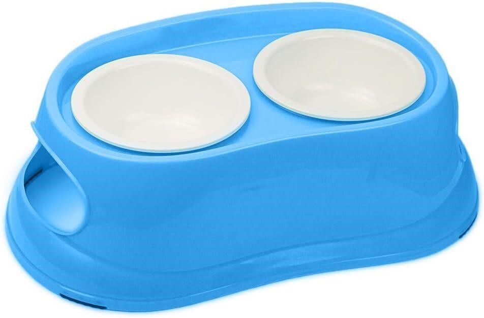 BOWLS ARE BLUE NOT WHITE, NO RETAIL BOX eRGONOMIC: Your furry friend will appreciate this elevated design to reduce your pets' neck or back pain DURABLE & QUALITY: All of our products went through durability testing and are made to last FUNCTIONAL DESIGN: Non-flippable and non-skid design. Easy to take apart for cleaning and travelling.