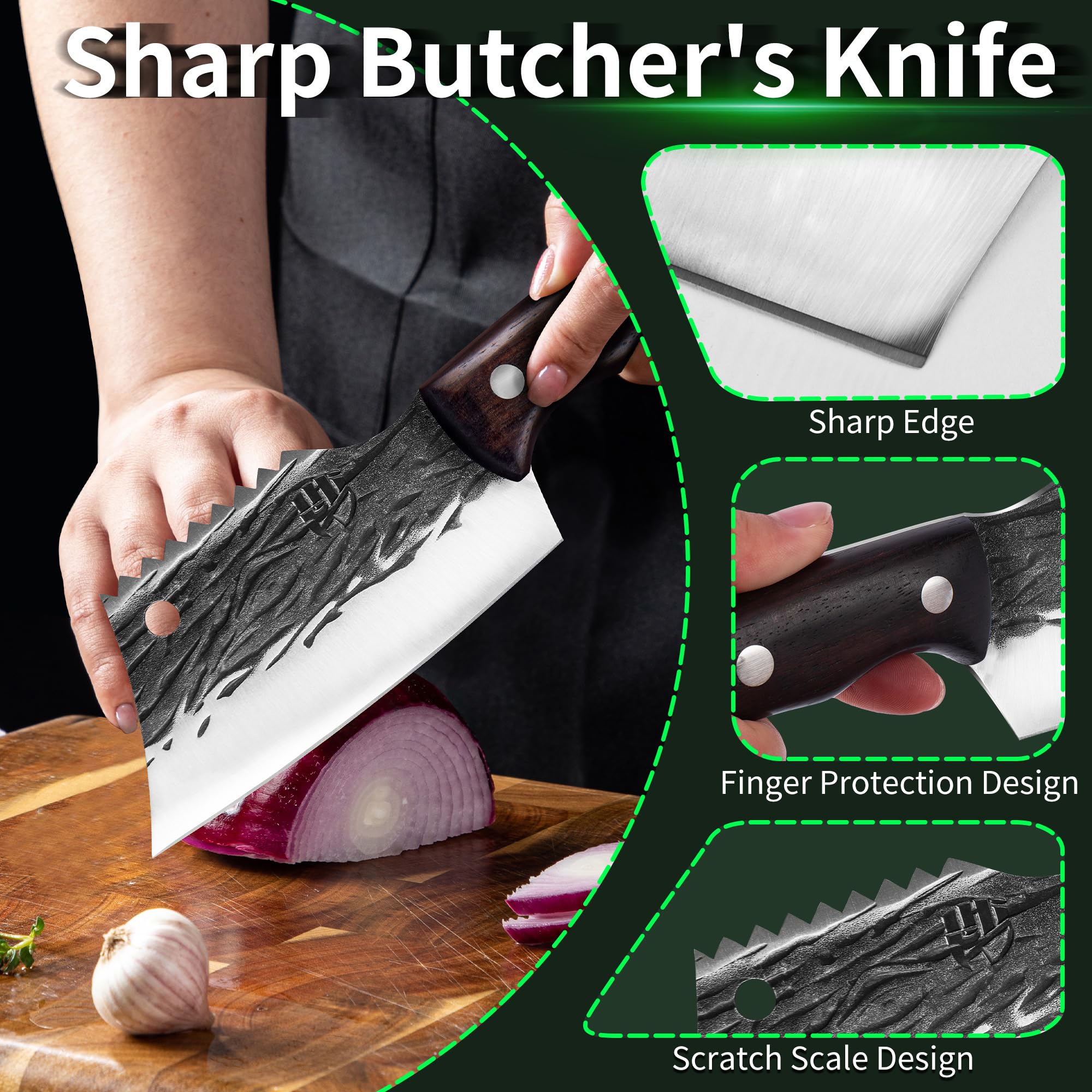 FULLHI Kitchen Knife with sheath,Meat Cleaver Knife for Meat Cutting, High Carbon Steel Forged Butcher Full Tang Chef Knife