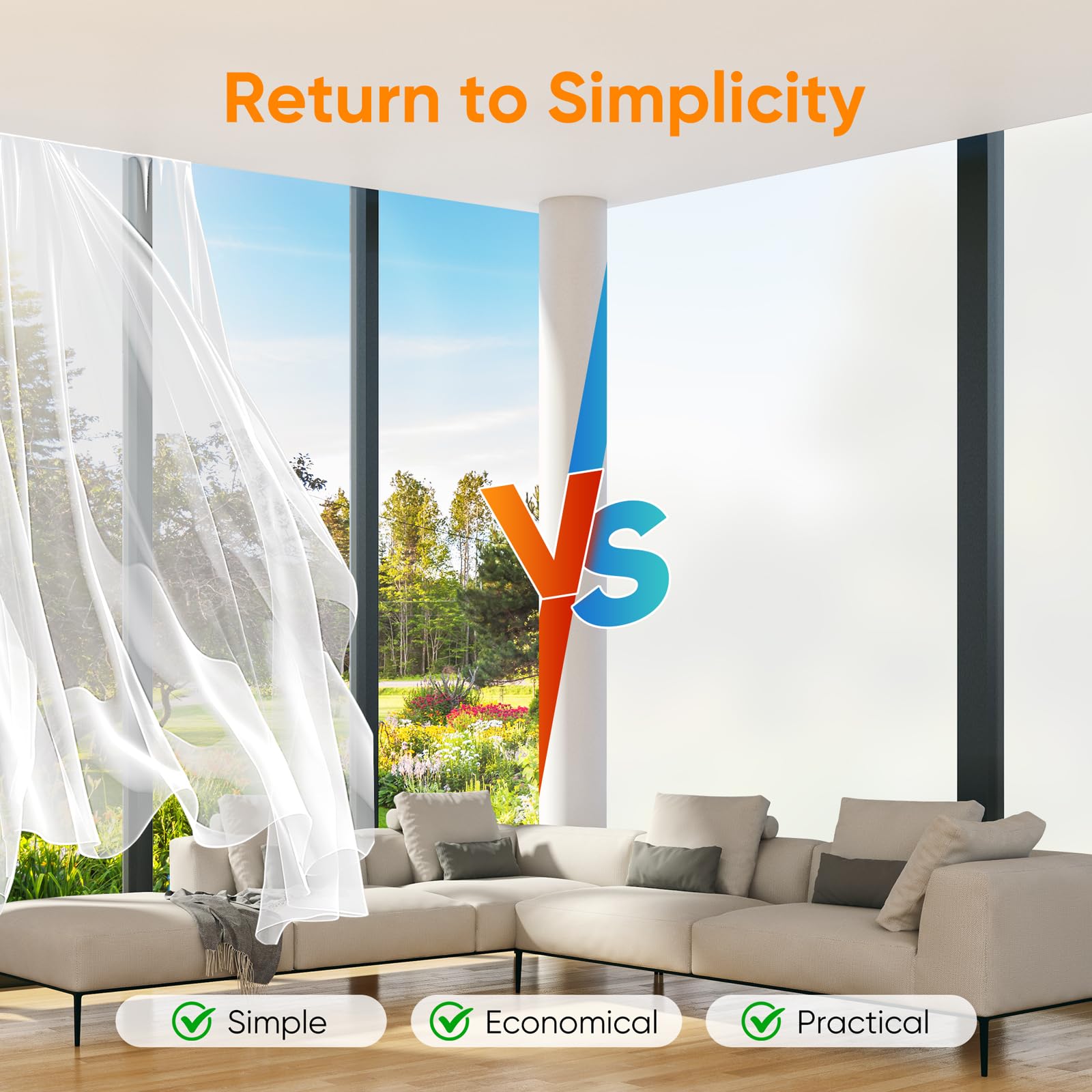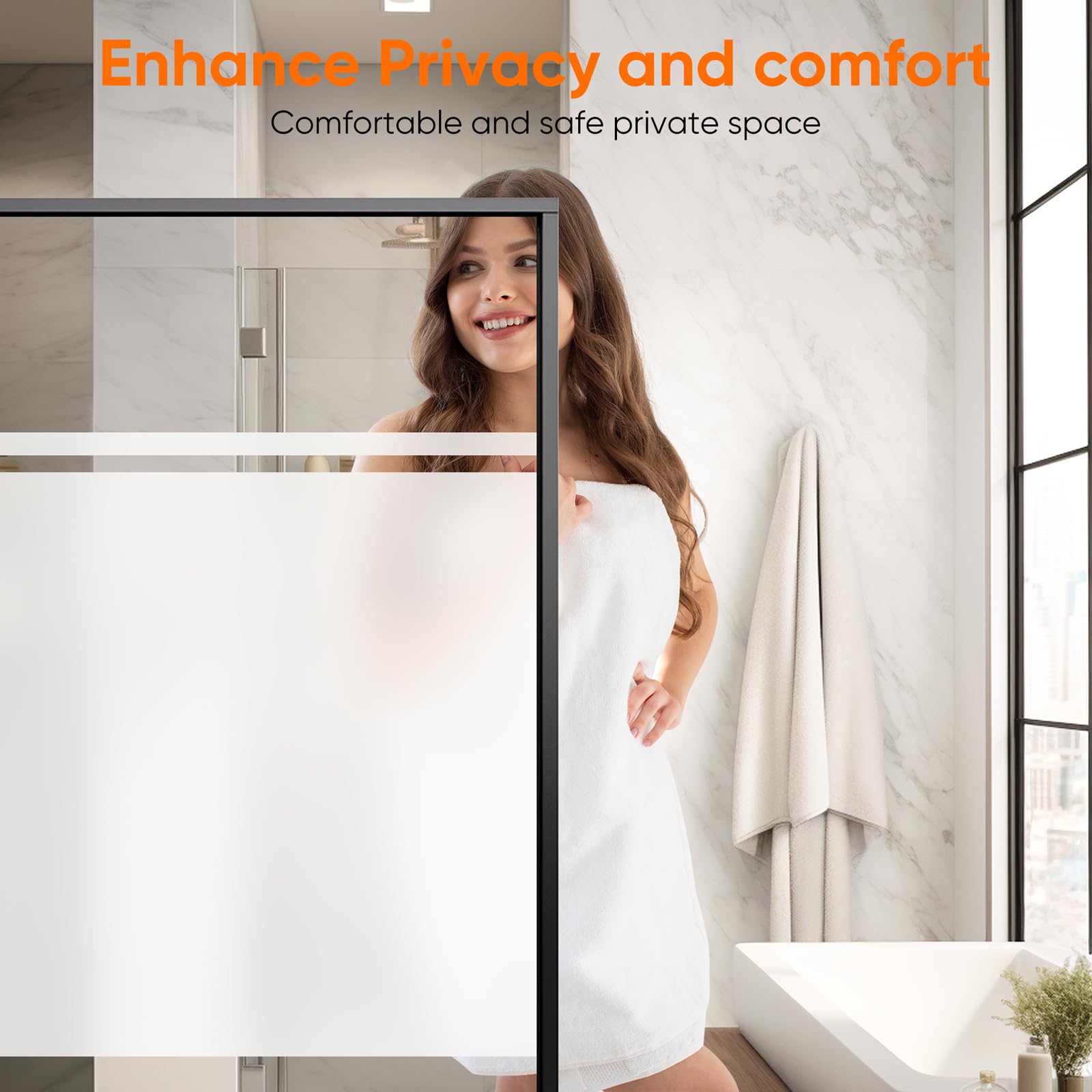 Funfox Window Film for Privacy, Frosted Glass Sticker Non-Adhesive Opaque Vinyl Window Film Covering Sun Blocking Static Cling Anti-UV for Bathroom Office Living Room Matte White 35.4 x 157 inch