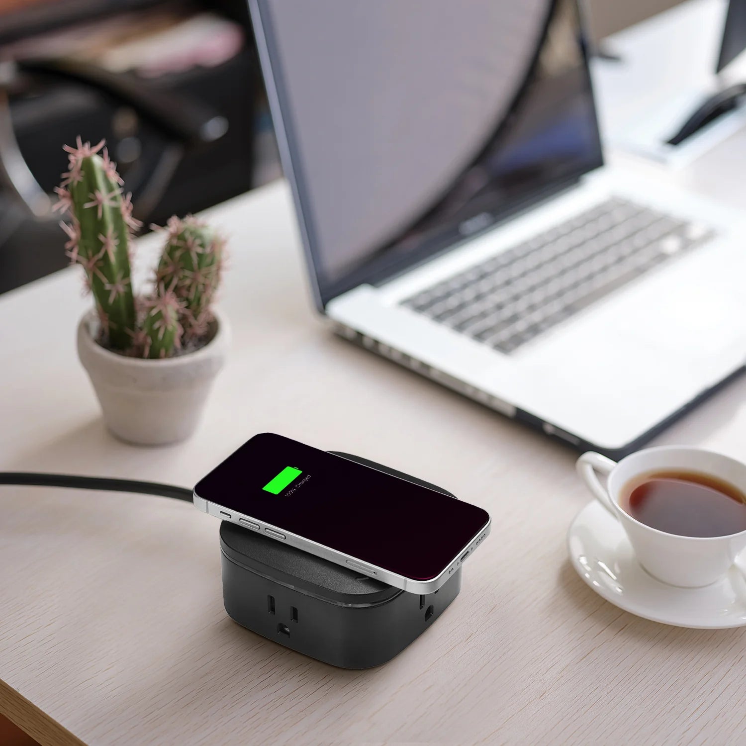 • Additionally, the 10W fast charging wireless charger is ideal for compatible devices. A 6-foot cord gives you the added convenience of increased range from power outlets while the two grounded outlets are perfect to use at home or in the office.
