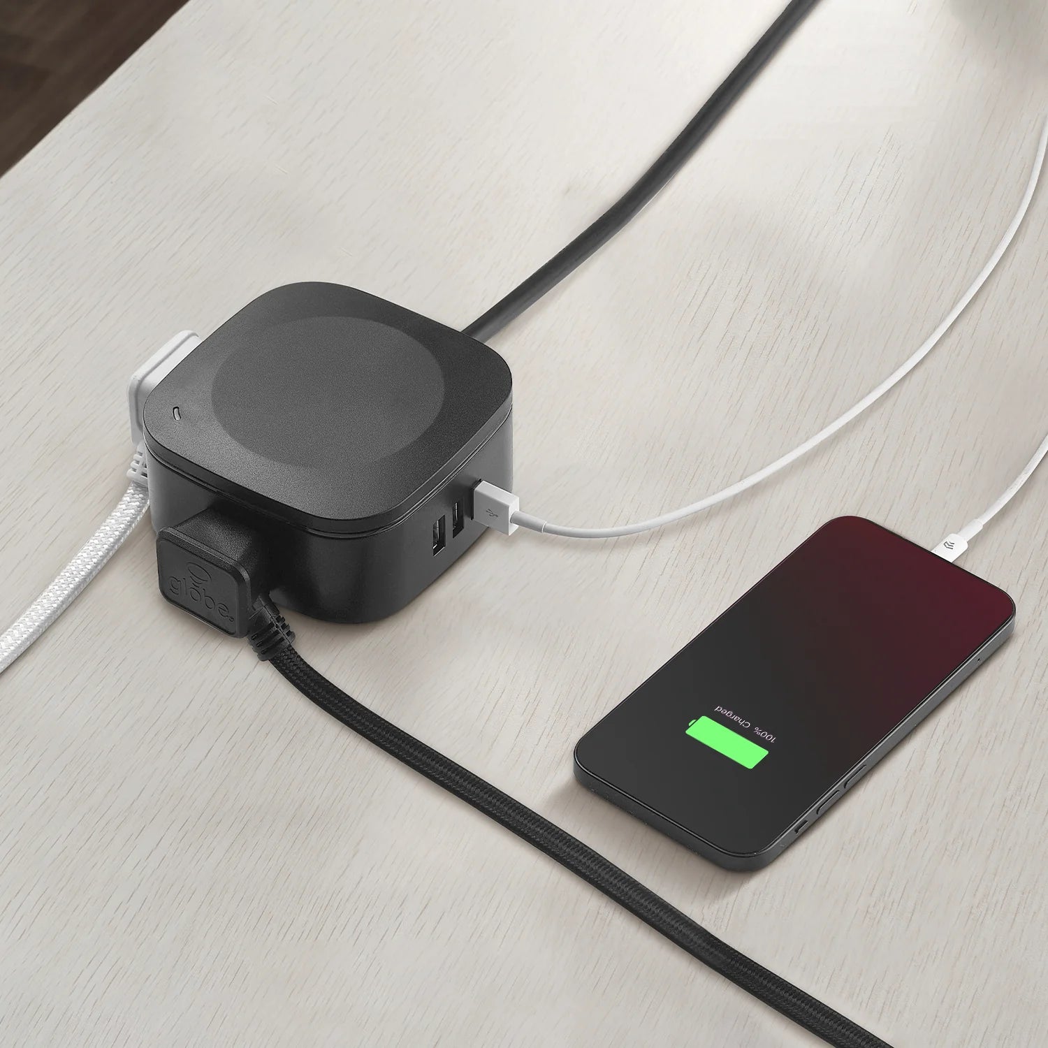 Globe 6 ft. 2-Outlet Black 3-USB Wireless Charging Surge Protector Desktop Power Hub