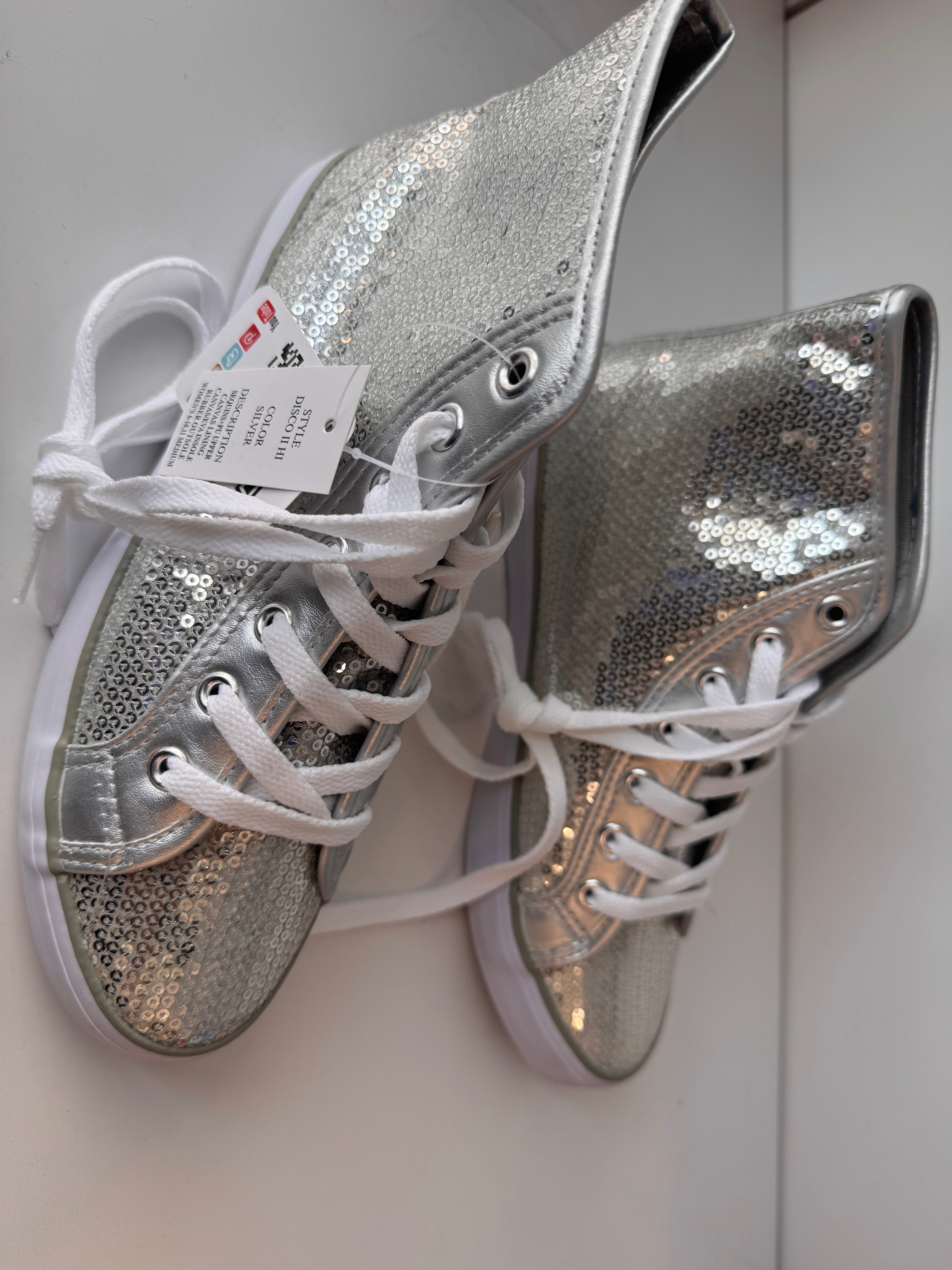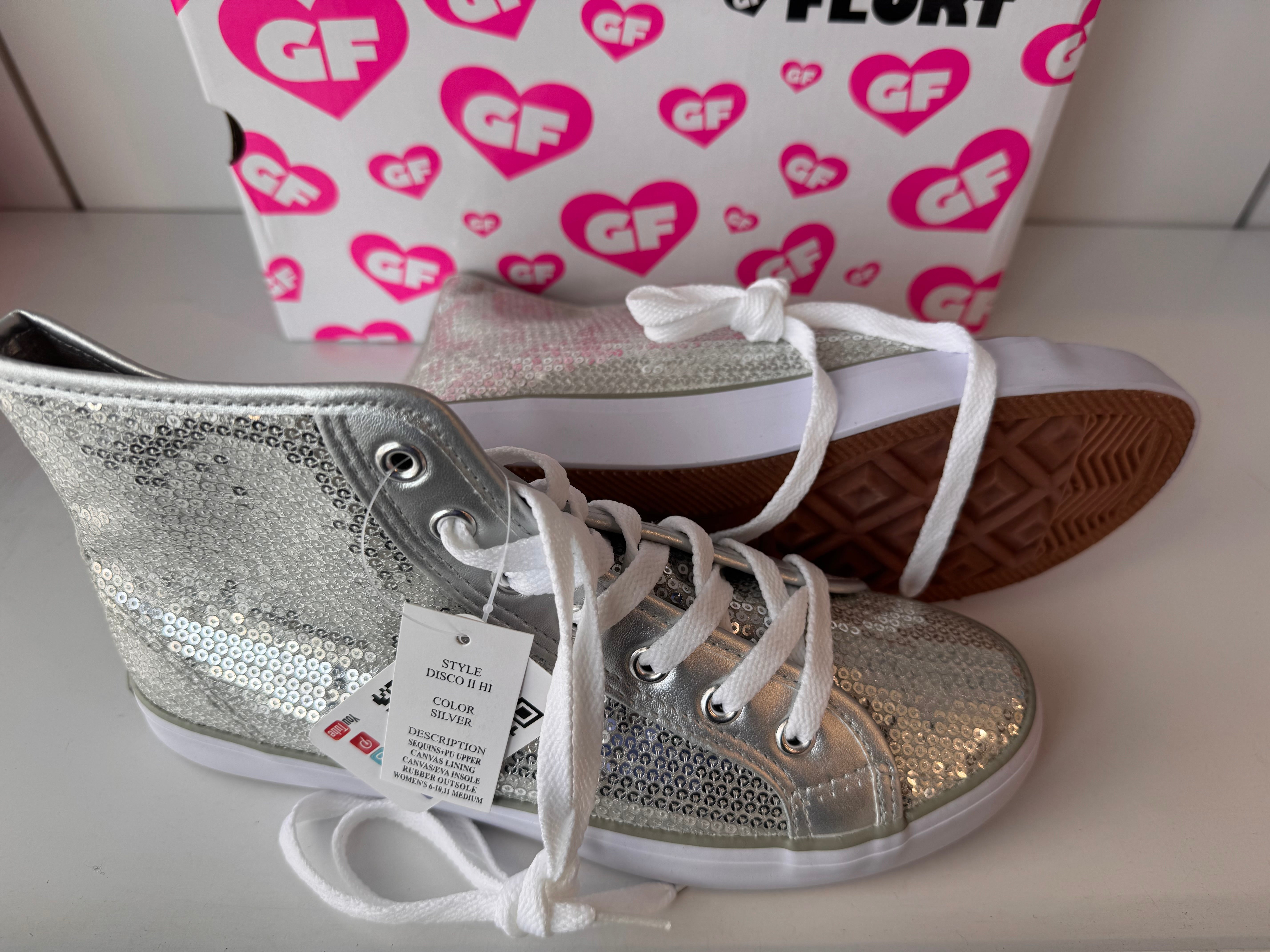 Gotta Flurt Women's Disco II Hi Silver Sequin Hip Hop Dance Sneaker