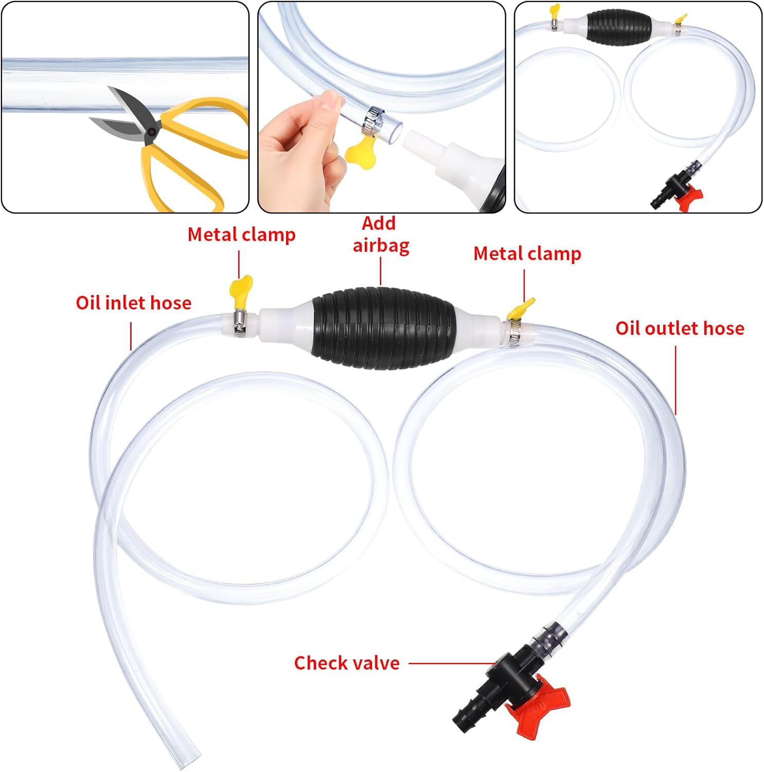 • Convenient Efficient: once installed, squeeze the airbag a few times and the siphon fluid will run, our new fuel transfer pump is 60 seconds faster than the old style fluid transfer pump