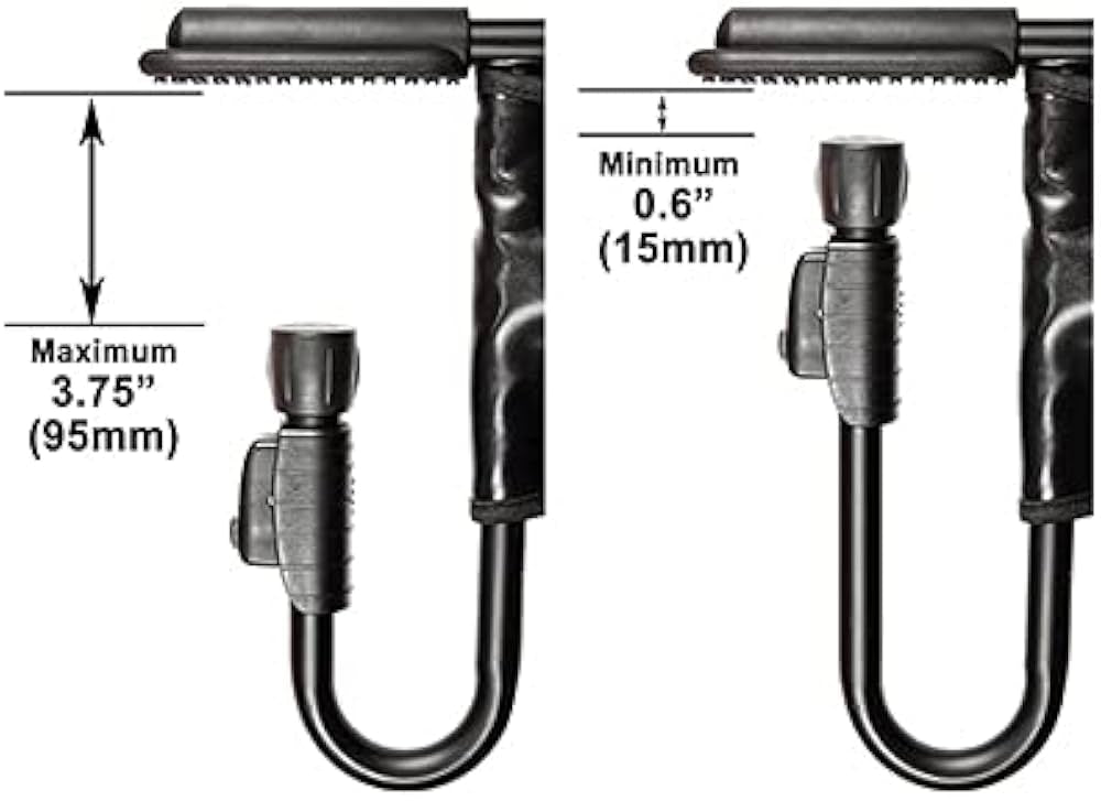 10 cm of clamp clearance and the attachment for the table opening is 3.75”
