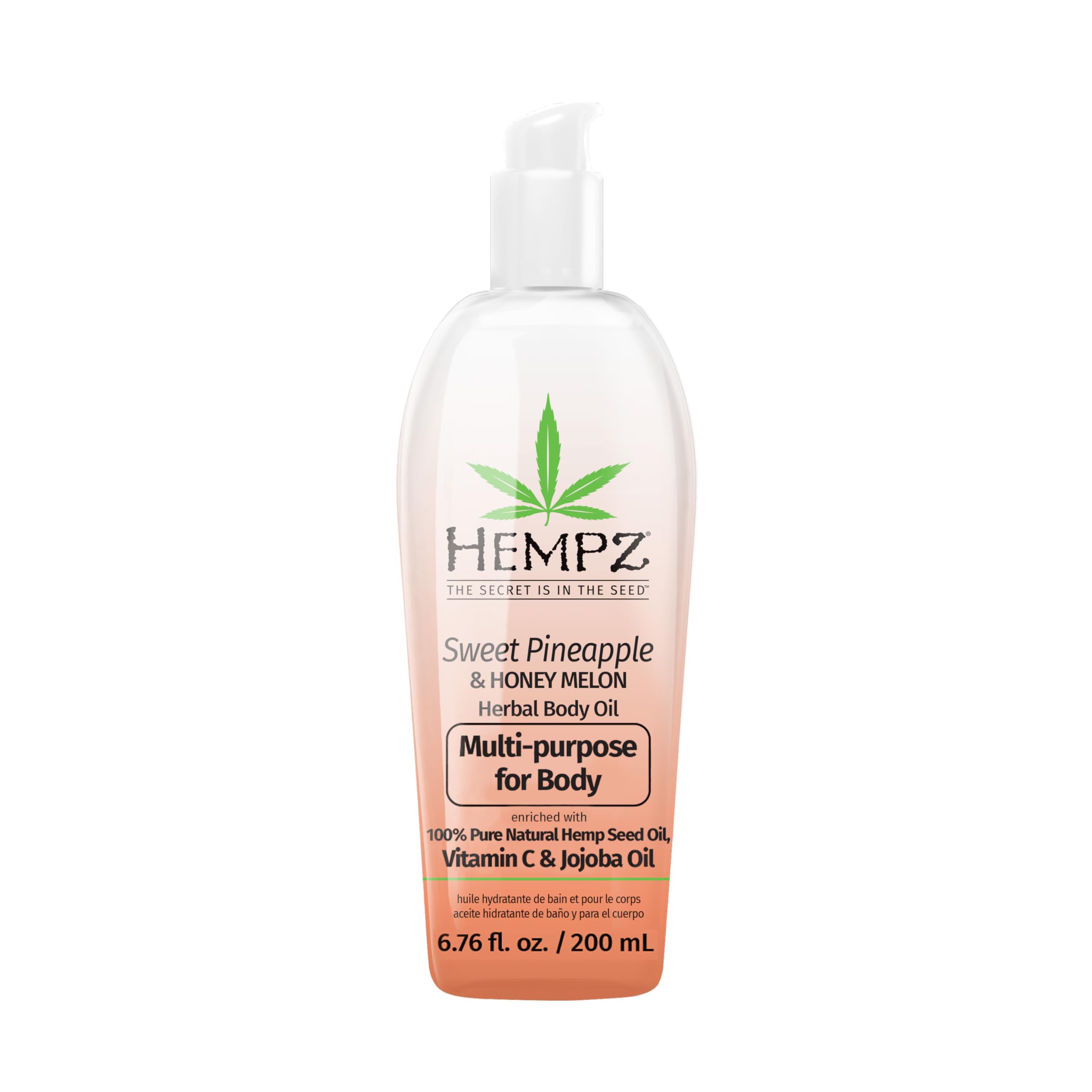 HEMPZ Sweet Pineapple & Honey Melon Herbal Hydrating Multi-Purpose Body Oil for Body - Moisturizing Bath, Shower, or Shaving Oil for Dry or Sensitive Skin for Women & Men, 6.76 Oz