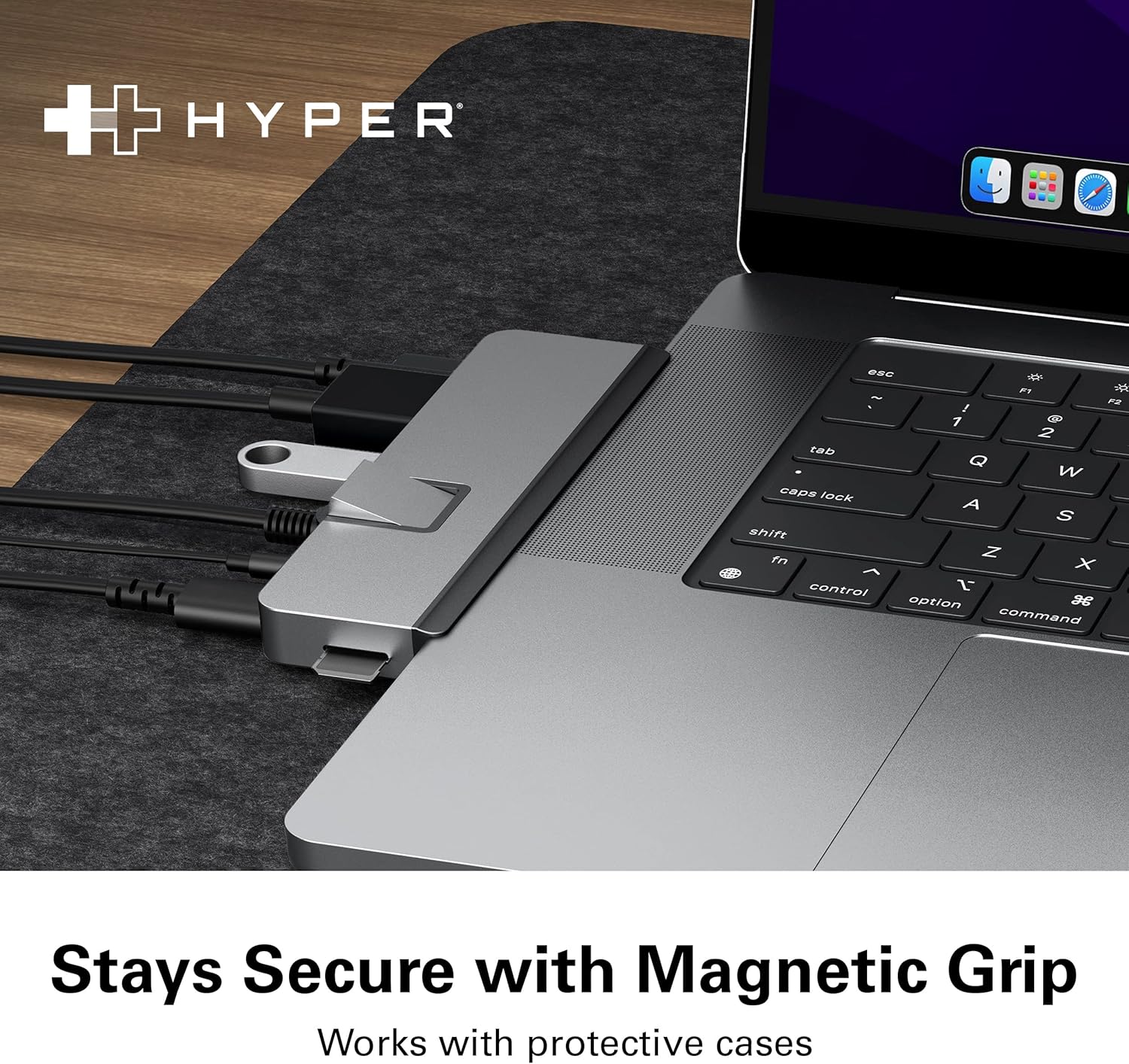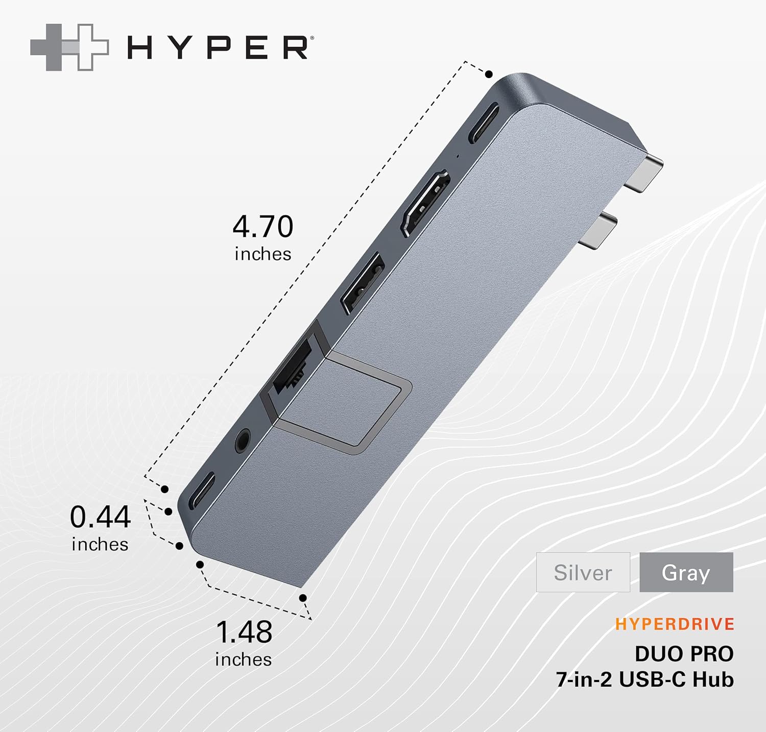 HyperDrive Duo 7-in-2 MacBook USB C Hub — USB Hub for Mac Pro 14” & 16” — 4K60Hz HDMI, Ethernet, USB4 40Gbps 100W Power Delivery, USB-C 10Gbps, USB-A, MicroSD, 3.5mm Jack, Magnetic Mount (Space Gray)