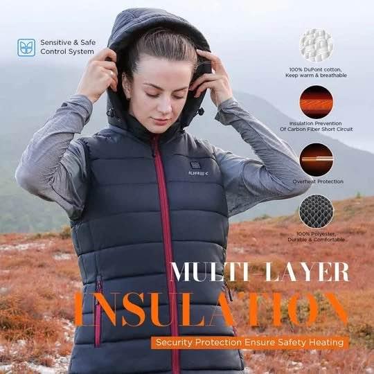 IUREK Women’s Heated Vest, Lightweight Heated Clothing with 10000mA Battery Pack, Black Lightweight & Comfortable Heated Vest: Adopt premium DuPont cotton and advanced technology that provides first-class heating performance. It's breathable, lightweight, waterproof, windproof, machine washable. Safe Feature & Heating Zones: With the smart heating system, the upgraded heated vest will provide overheating protection to keep you safe. It features 4 carbon fiber heating elements generating heat across the collar, midback, and two pockets. Long-Lasting Warmth & Multi-Function: With 7.4V 10000mAh battery pack, the heated vest delivers up to 10 hrs heat. 4 Heating Settings: Long press for 3s to turn on the preheat mode can make you feel toasty warm in seconds. Simply press the touch-button to adjust the heating levels, (Low 100°F/Medium 113°F/High131°F) according to your needs This machine-washable vest, worn alone or paired with a lightweight jacket, is water and wind resistant. Perfect for all outdoor winter activities, cold indoor environments, tailgating or walking your dog!