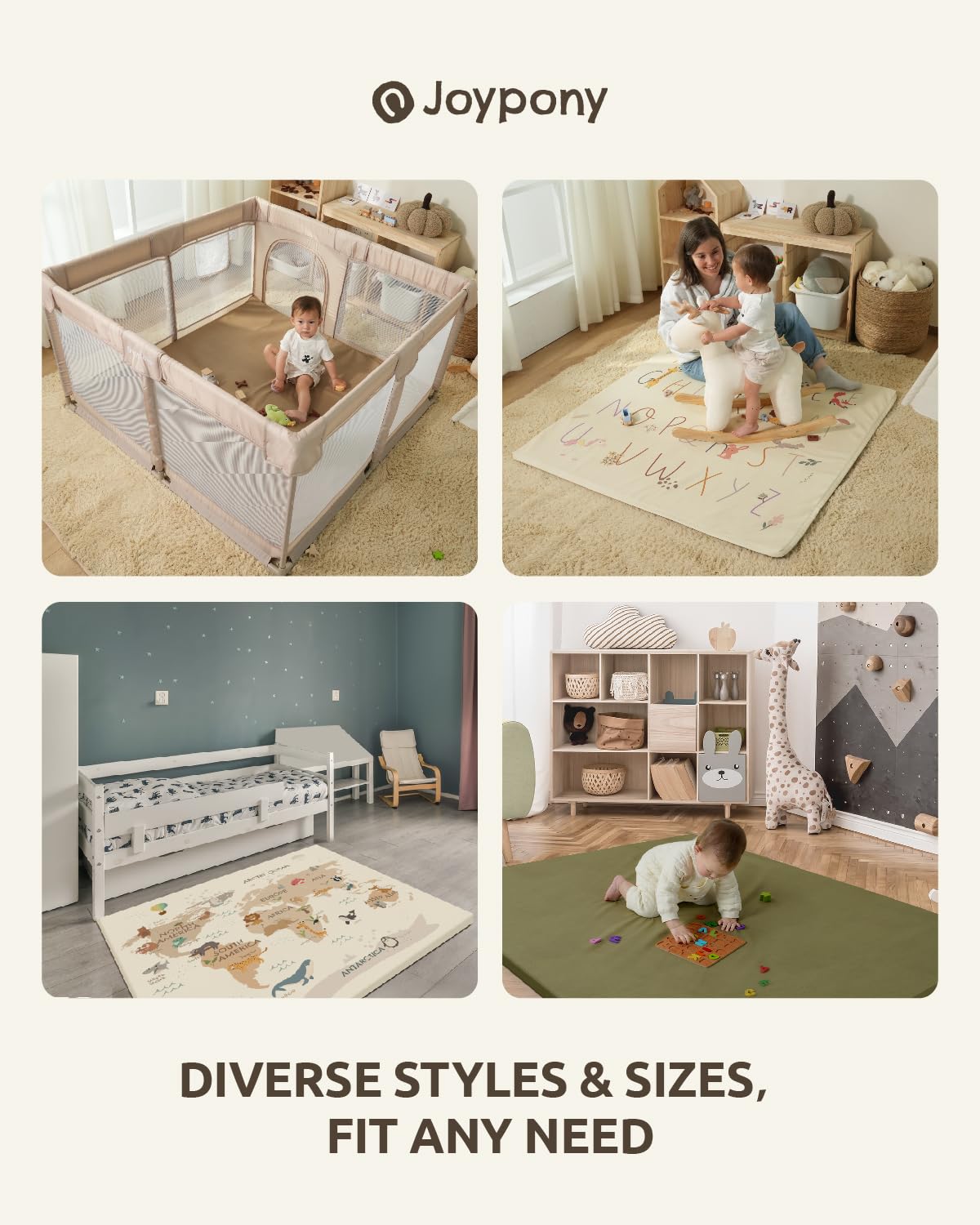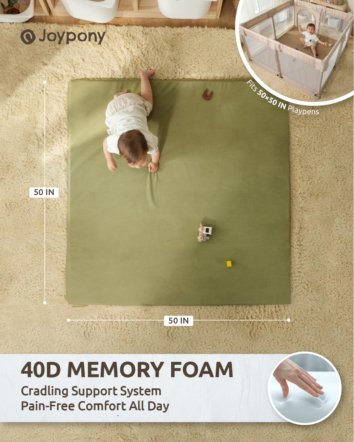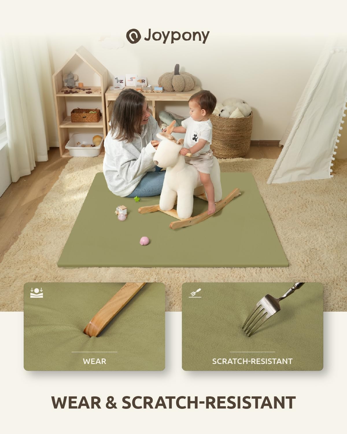 Joypony Leather Baby Play Mat 47×47×1.2 IN Foldable Play Mat Thick Memory Foam | Waterproof Baby Play Mat, Non-Slip & Safe for Newborns