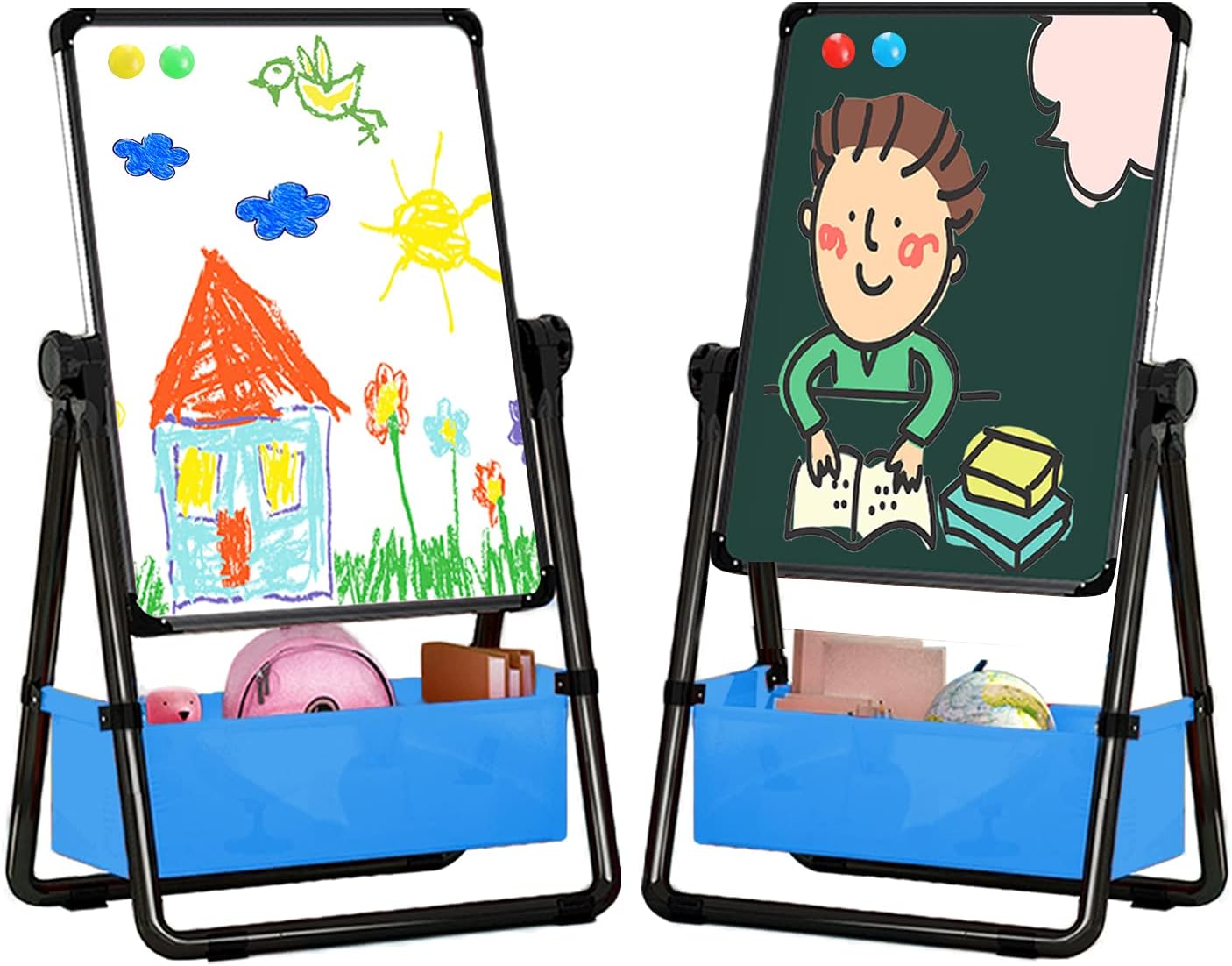 ❤Double-Sided: Platform size 18.9x24.8 inch, with chalkboard and whiteboard on each side, it can help kids do homework, math problems and painting, it is a huge paper saver.