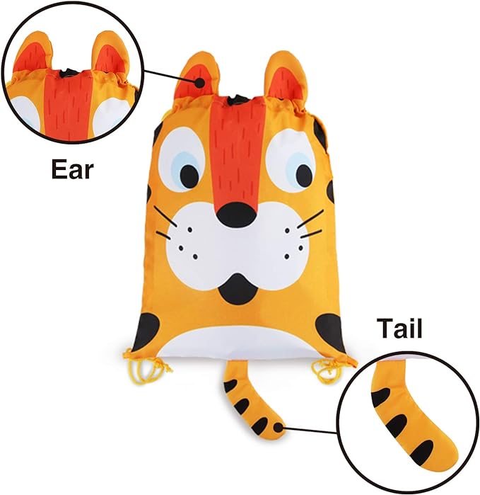 • CUTE ANIMAL DESIGN:5 different animal prints,including Smart Zebra,Brave Shark,Naughty Fox,Industrious Bee and Wonderful Tiger.Each design has 2 PCS.Vivid ear and tail(shark with fins), which make the bags more attractive to children.