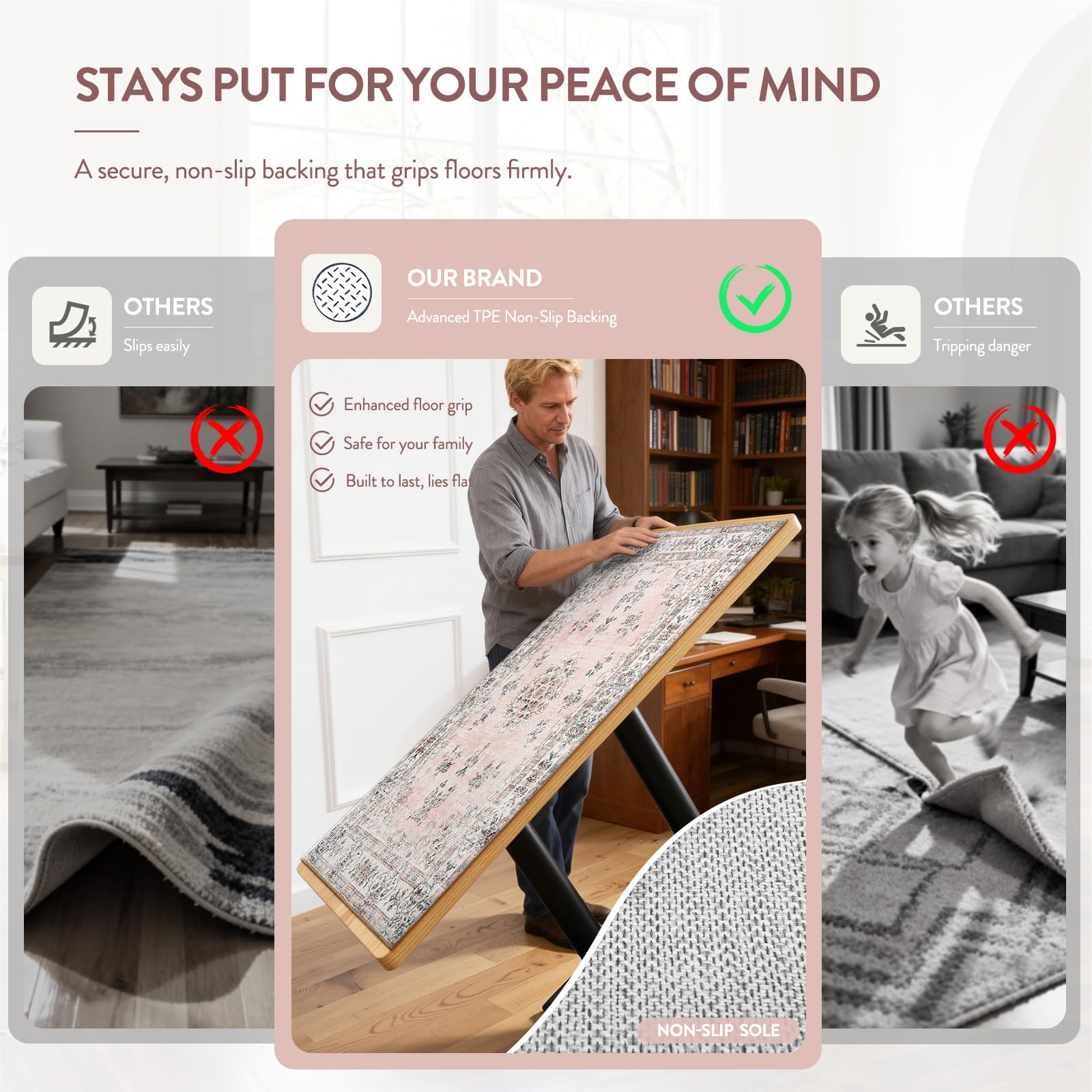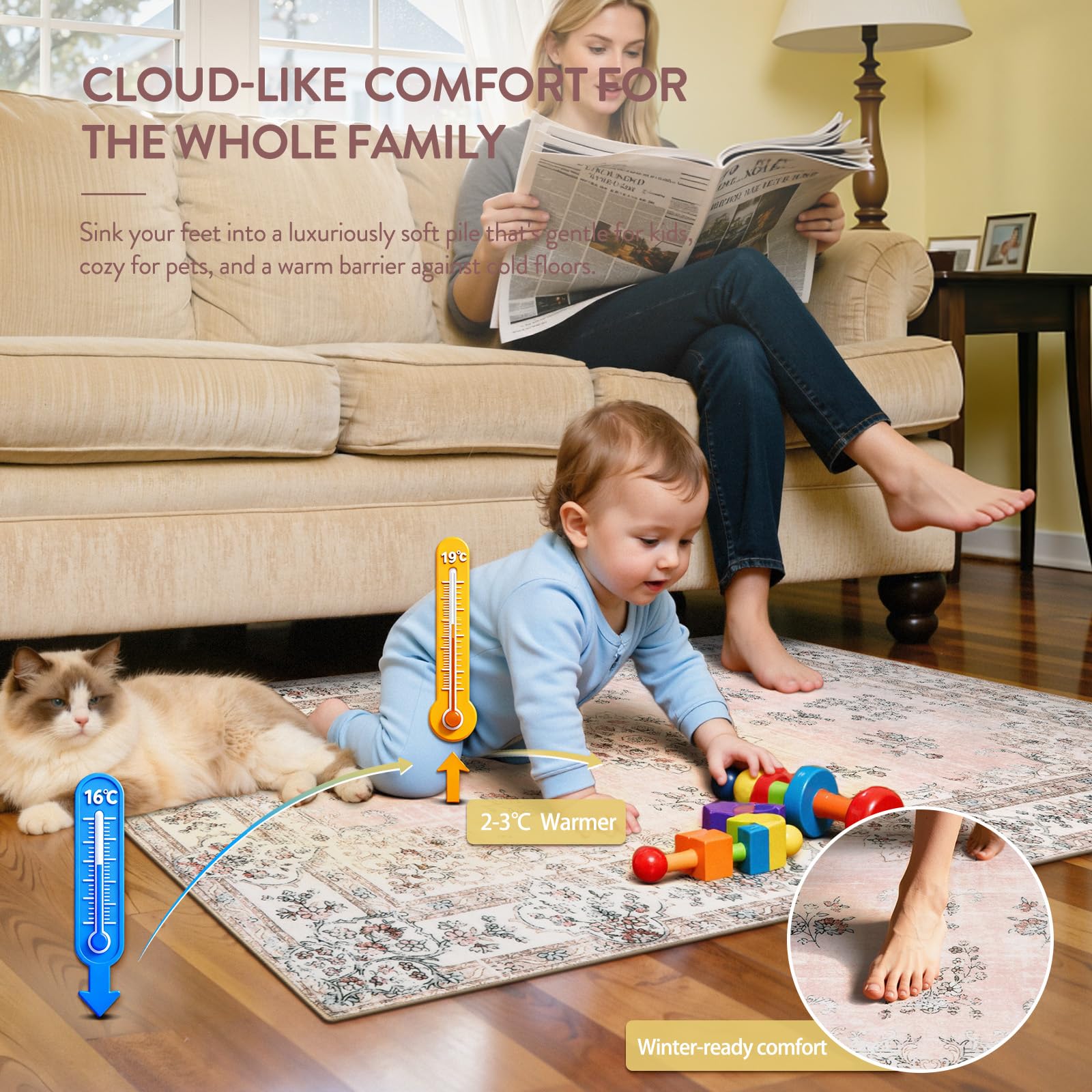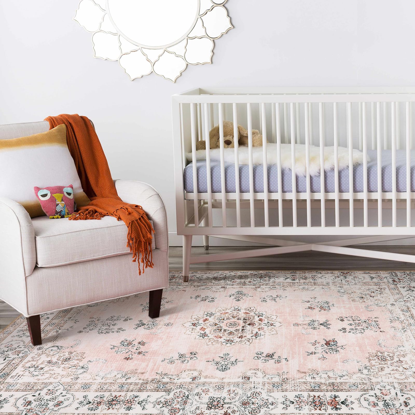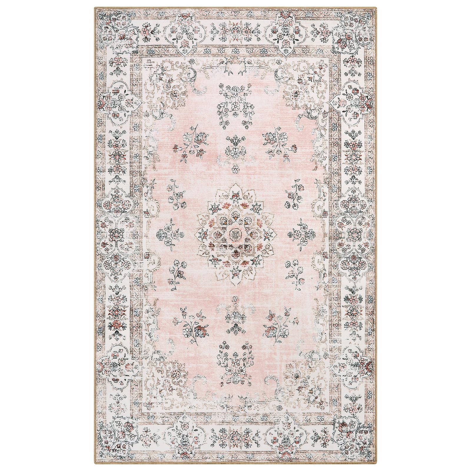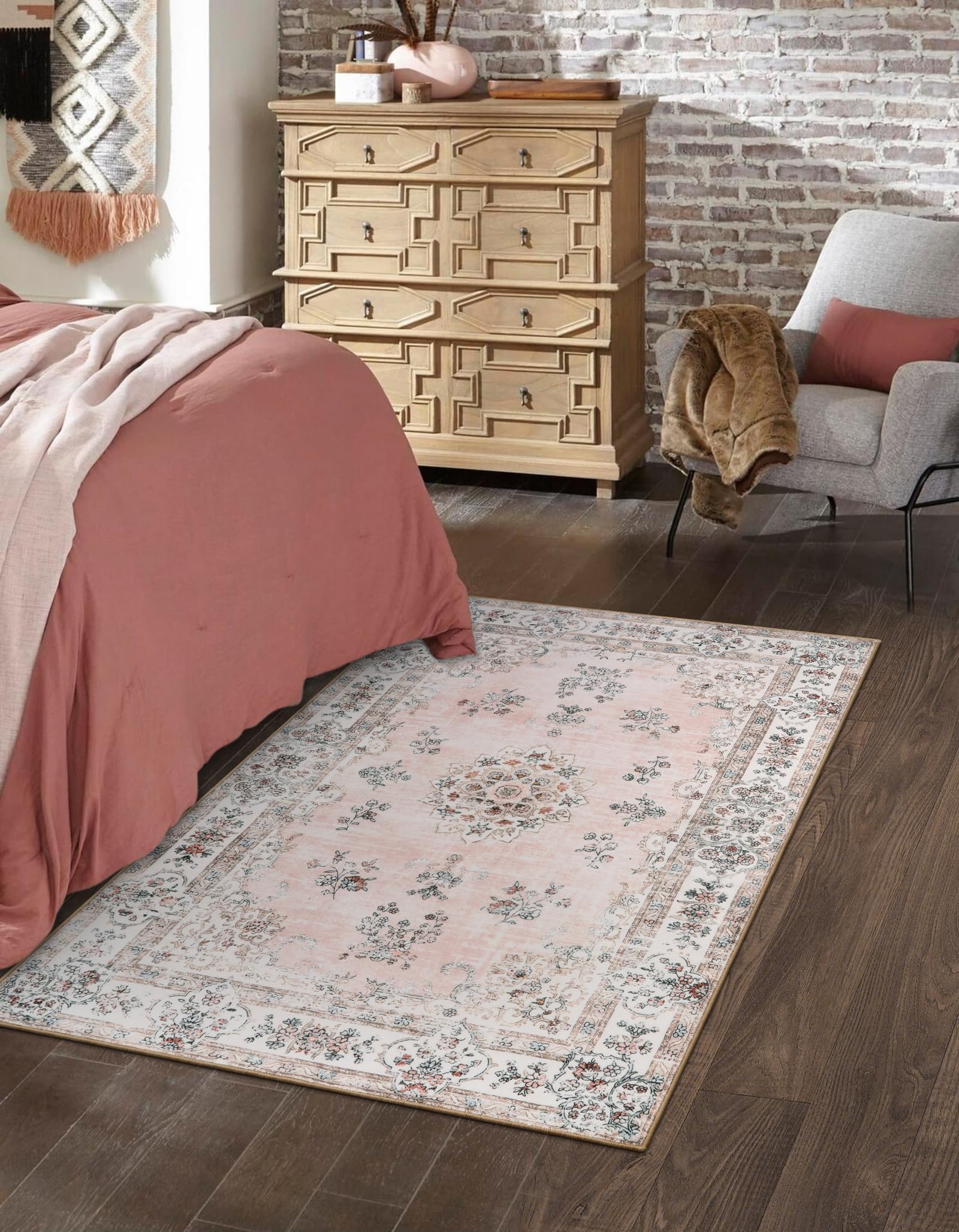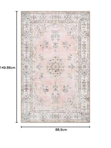 Lahome Boho Pink Area Rug 3x5', Floral Kids Rugs for Girls Room Bedroom Playroom, Washable Non Slip Flower Bathroom Mat Carpet for Nursery Entryway Bedside Indoor Floor Home Decor, Peach