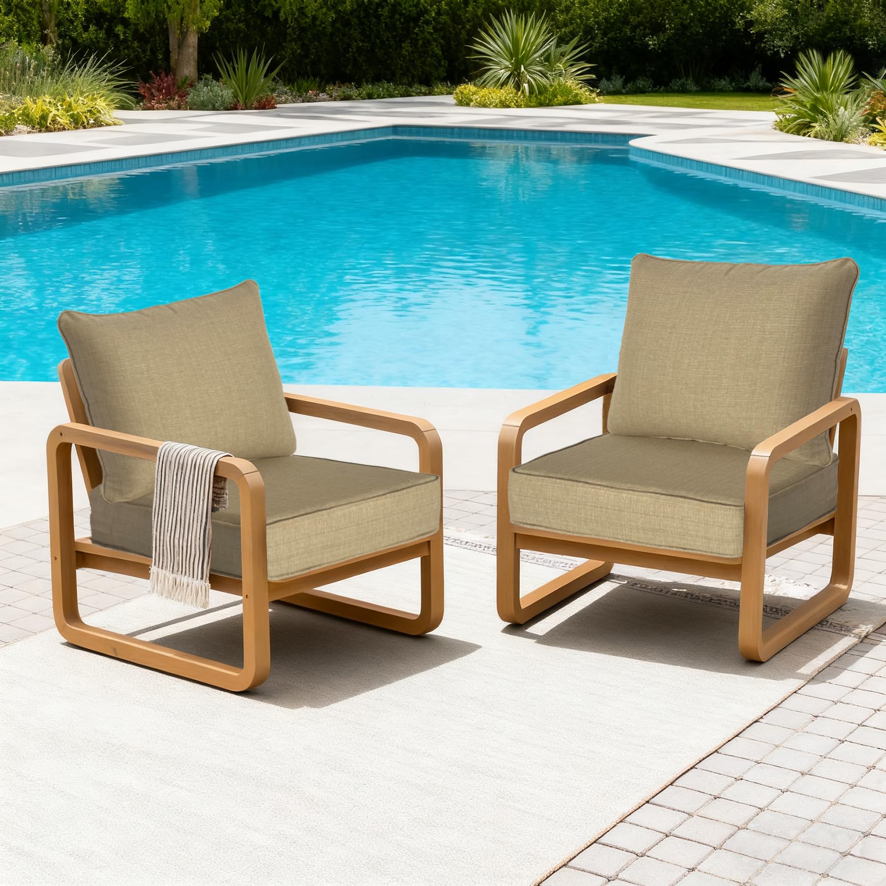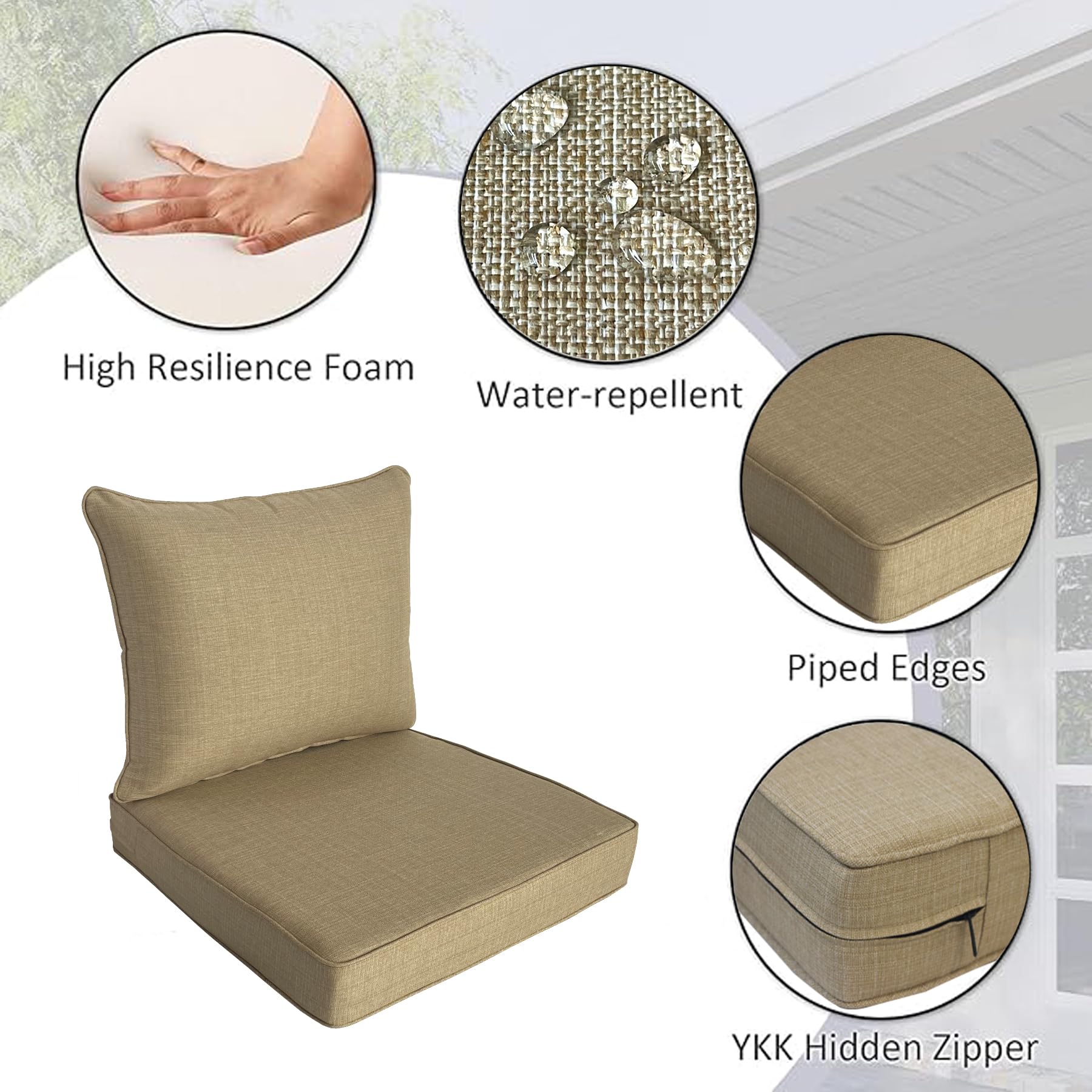 Localive 22x24 inch Outdoor/Indoor Deep Seat Patio Cushions Set of 2 Deep Seat Bottom Resilient Foam Filling with Zipper Water Repellent Abrasion-Resistant UV Resistant Weather Resistant Toffee