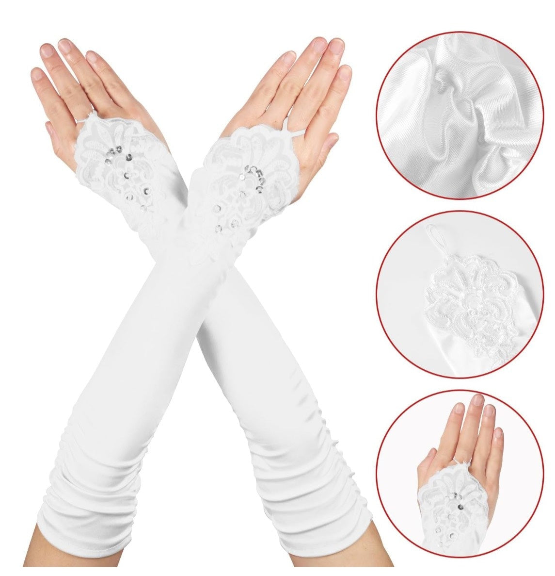 Long Lace Gloves, Soft Fingerless Lace Glove 1920s Opera Elbow Length Women's Gloves