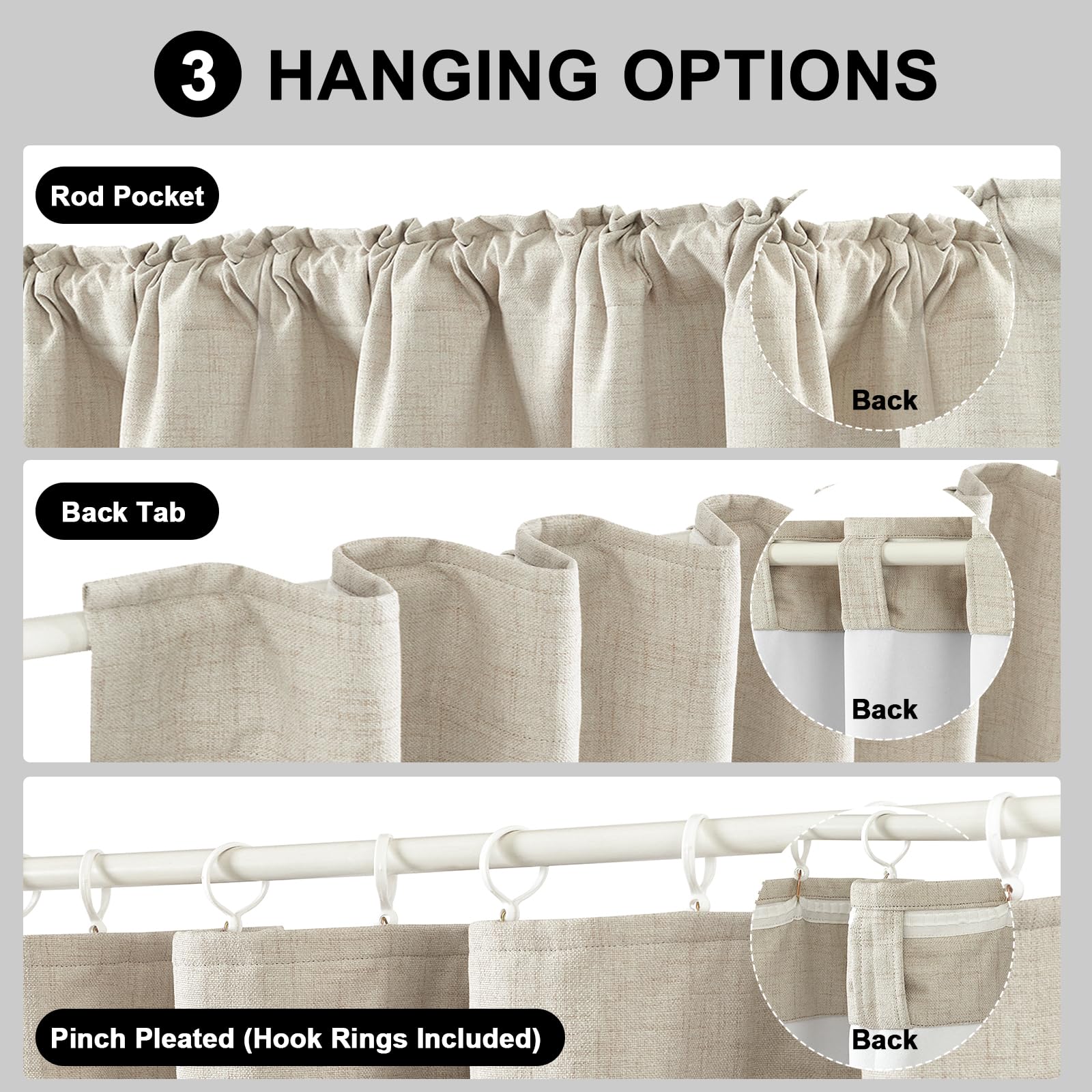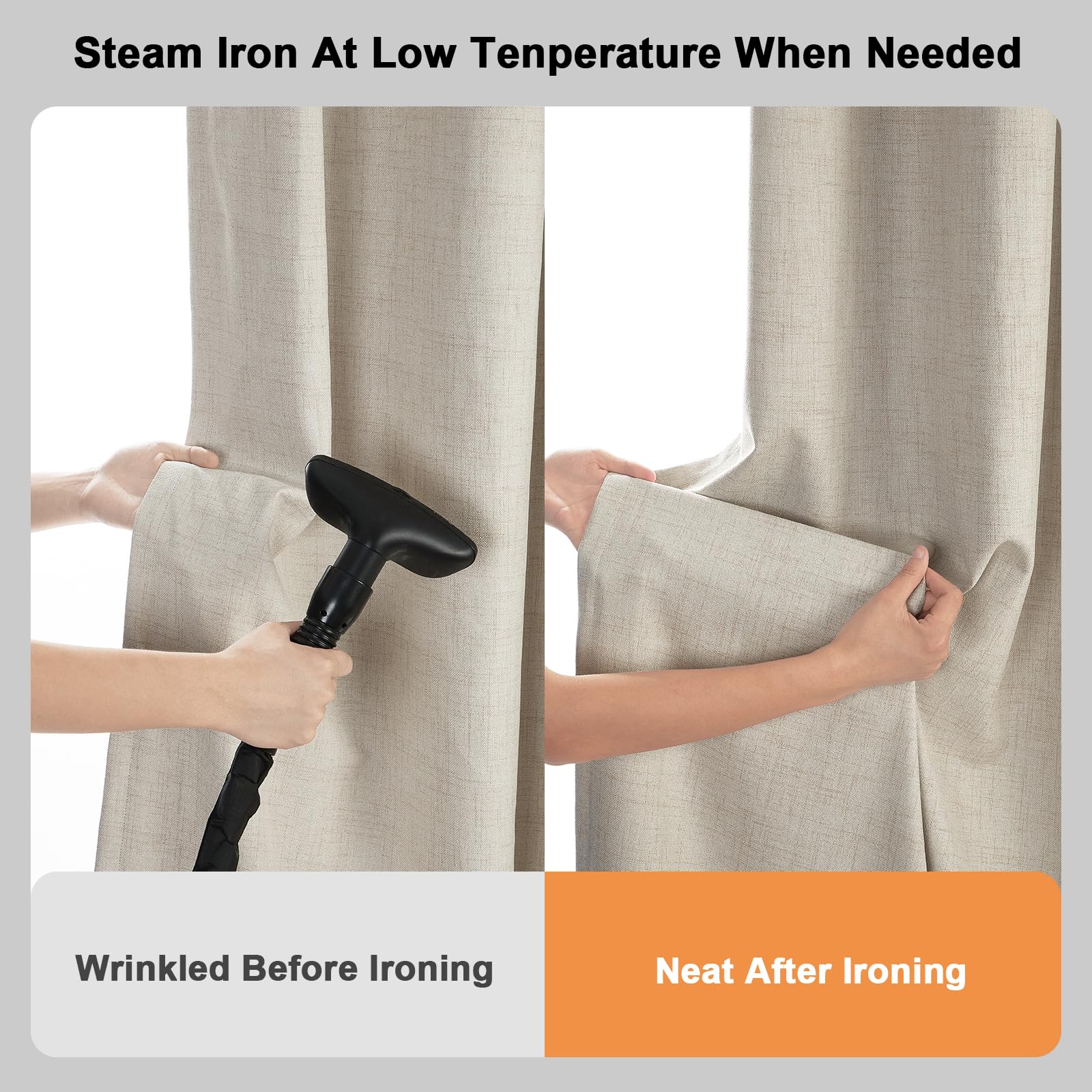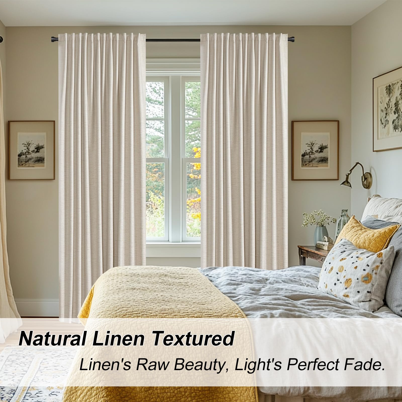 LumiLoom 100% Blackout Curtains 120 Inch Length 2 Panel Set, Heavy Duty Flax Linen Curtains for Living Room, Thermal Insulated Drapes for Bedroom, W52" x L120", Ivory