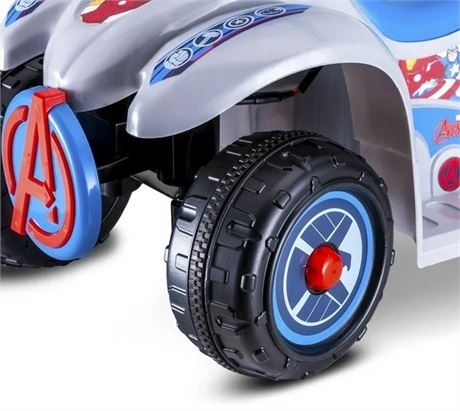 The Marvel Avengers 6 V Quad by KidTrax is ideal for your little Avengers fan. This electric quad comes with a six-volt battery and can travel at a safe speed of 3.2 km/hr. This quad features an easy push-button drive system that is easy for little hands to operate. This quad is equipped with Power Trax™ rubber traction strip tires for all terrain performance. It is ideal for children 18 months up to 3 years old. The Marvel Avengers 6 V quad will bring out super smiles and tons of cruising fun.