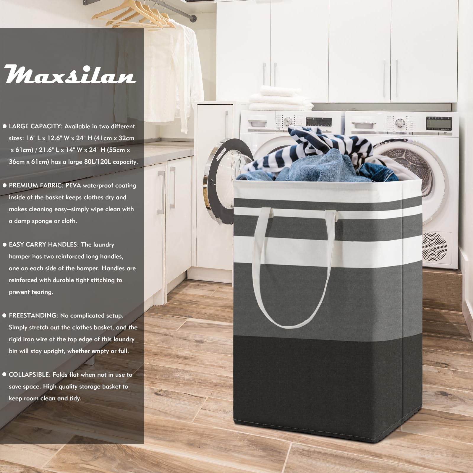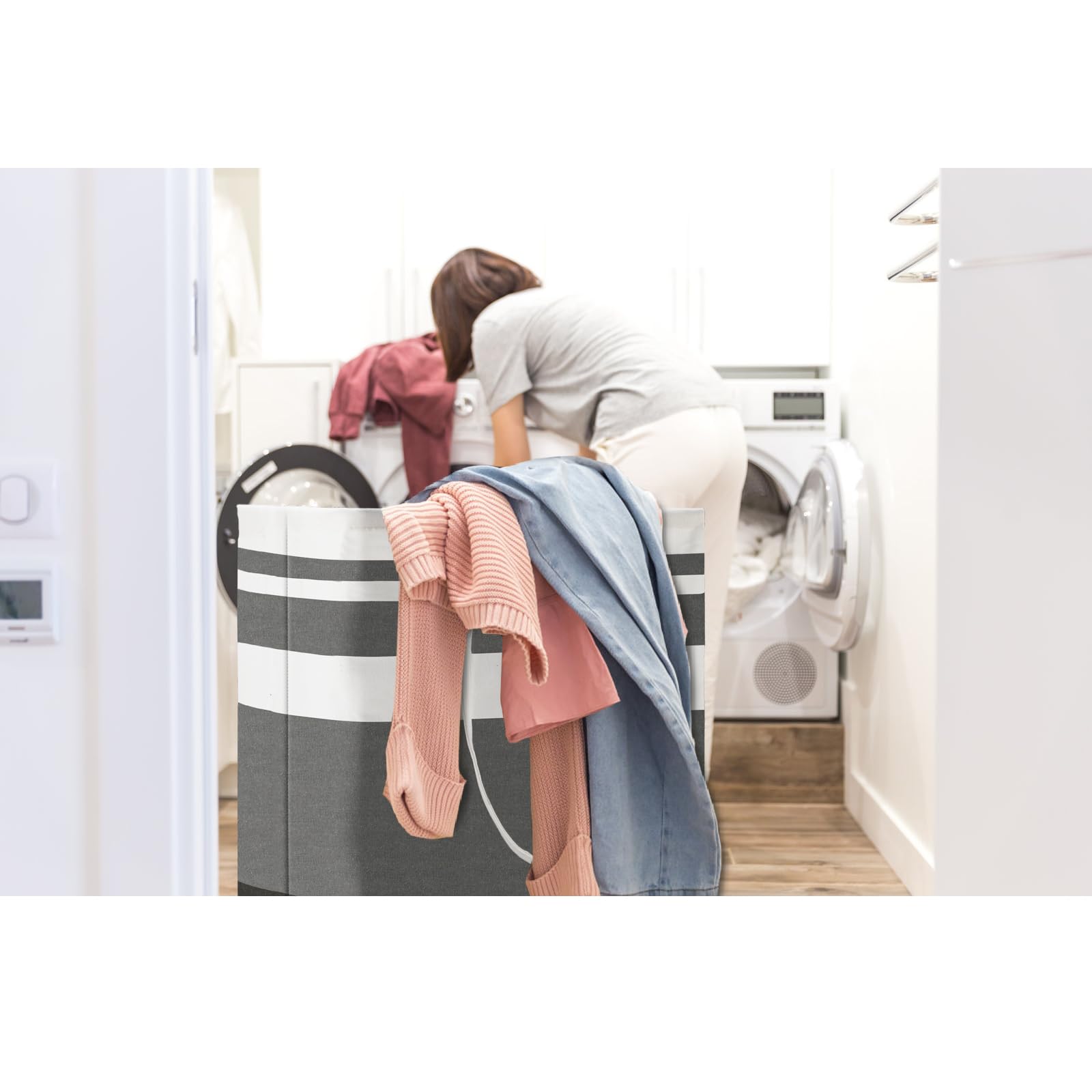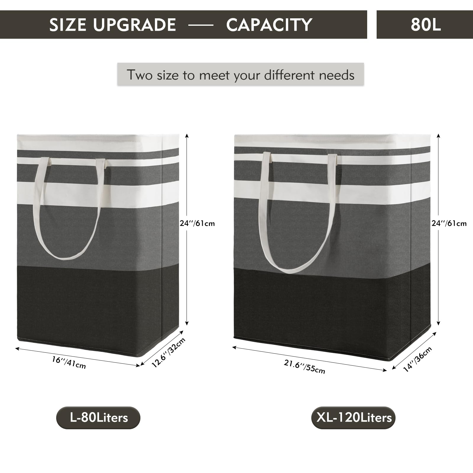 Maxsilan 120L 2-Pack Freestanding Laundry Basket with Extended Handle, Collapsible Large Cotton Clothes Hamper Storage Basket, Gradient Grey