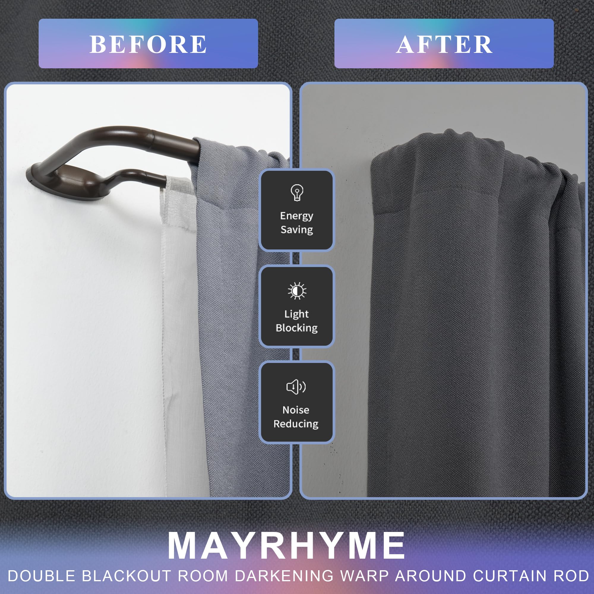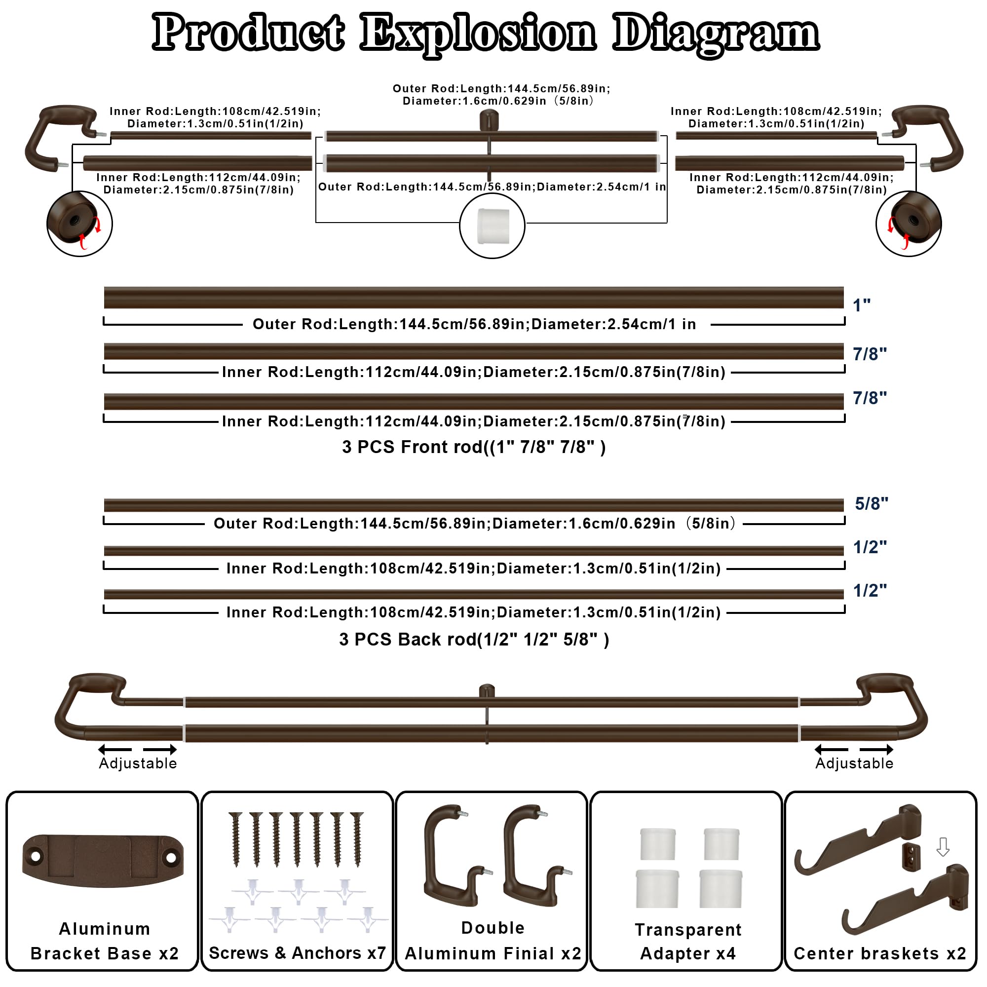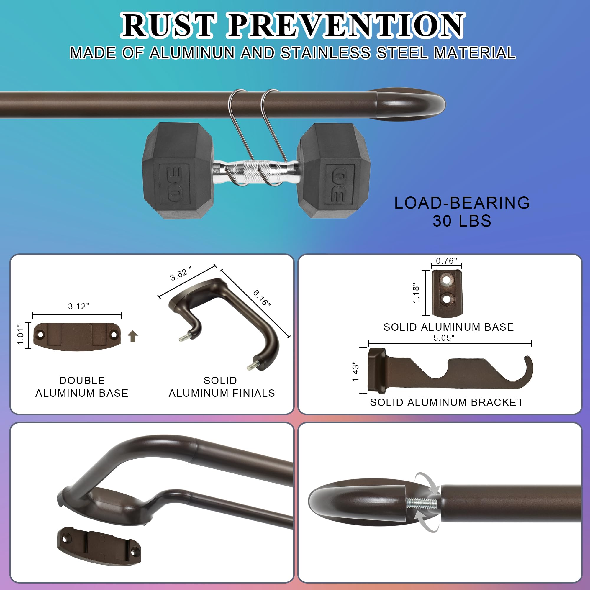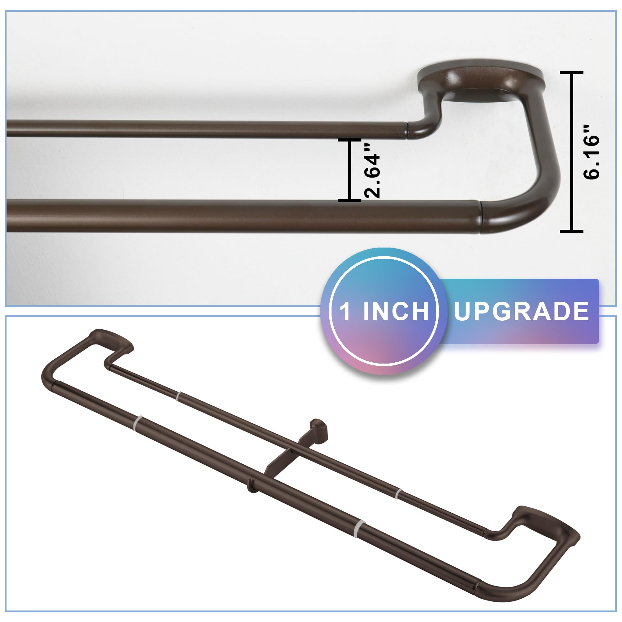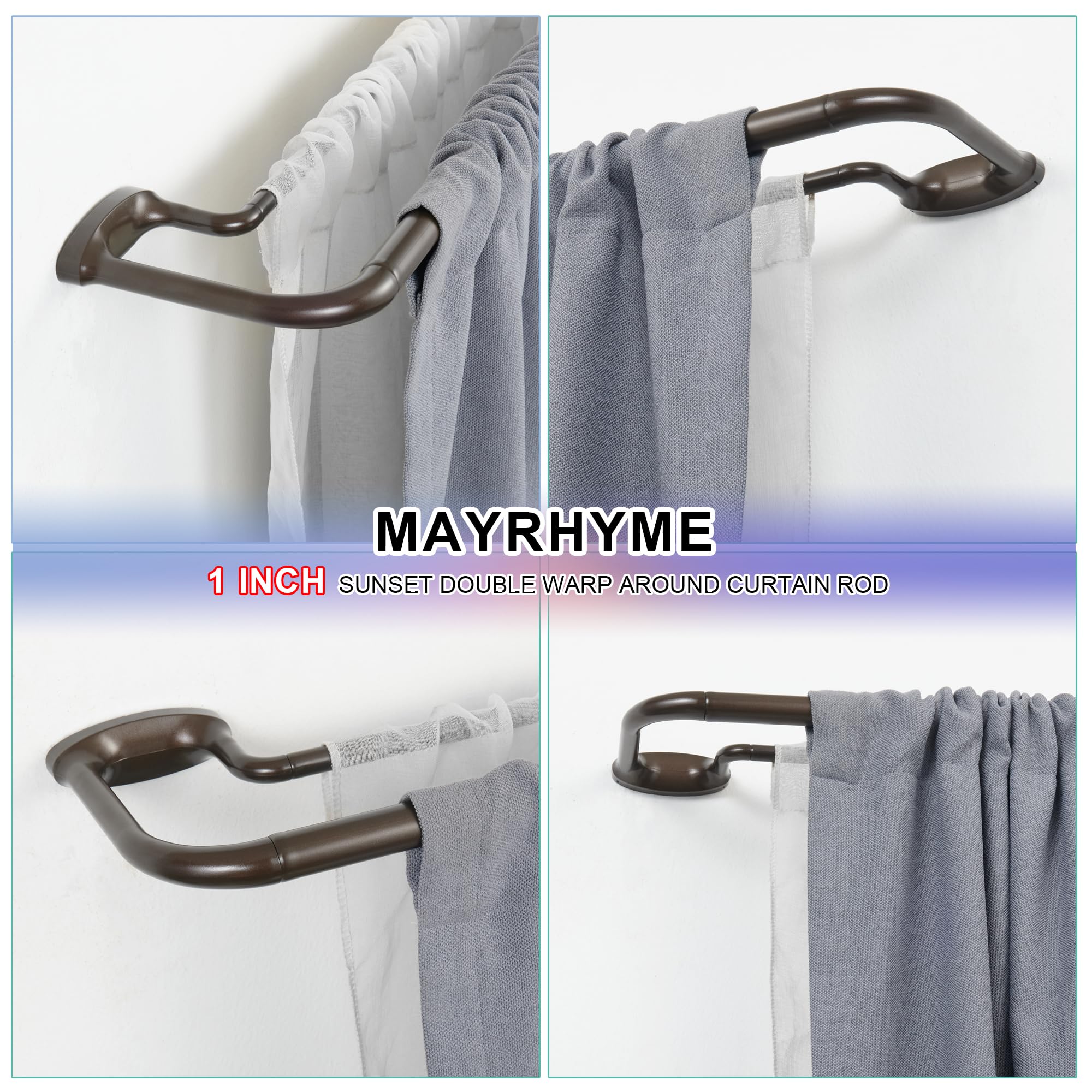 Mayrhyme Dark Bronze Double Curtain Rods for Windows 84-134 Inches,1 Inch Adjustable Double Wrap Around Blackout Curtain Rod with Aluminum Finials and Brackets
