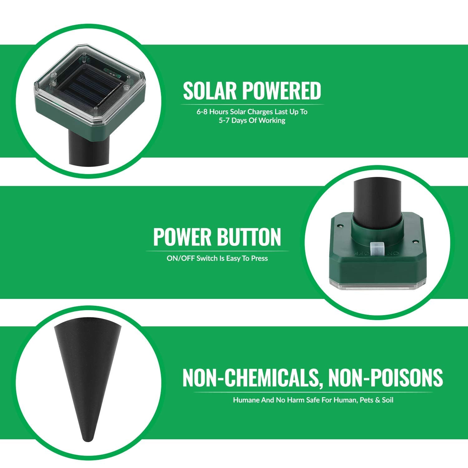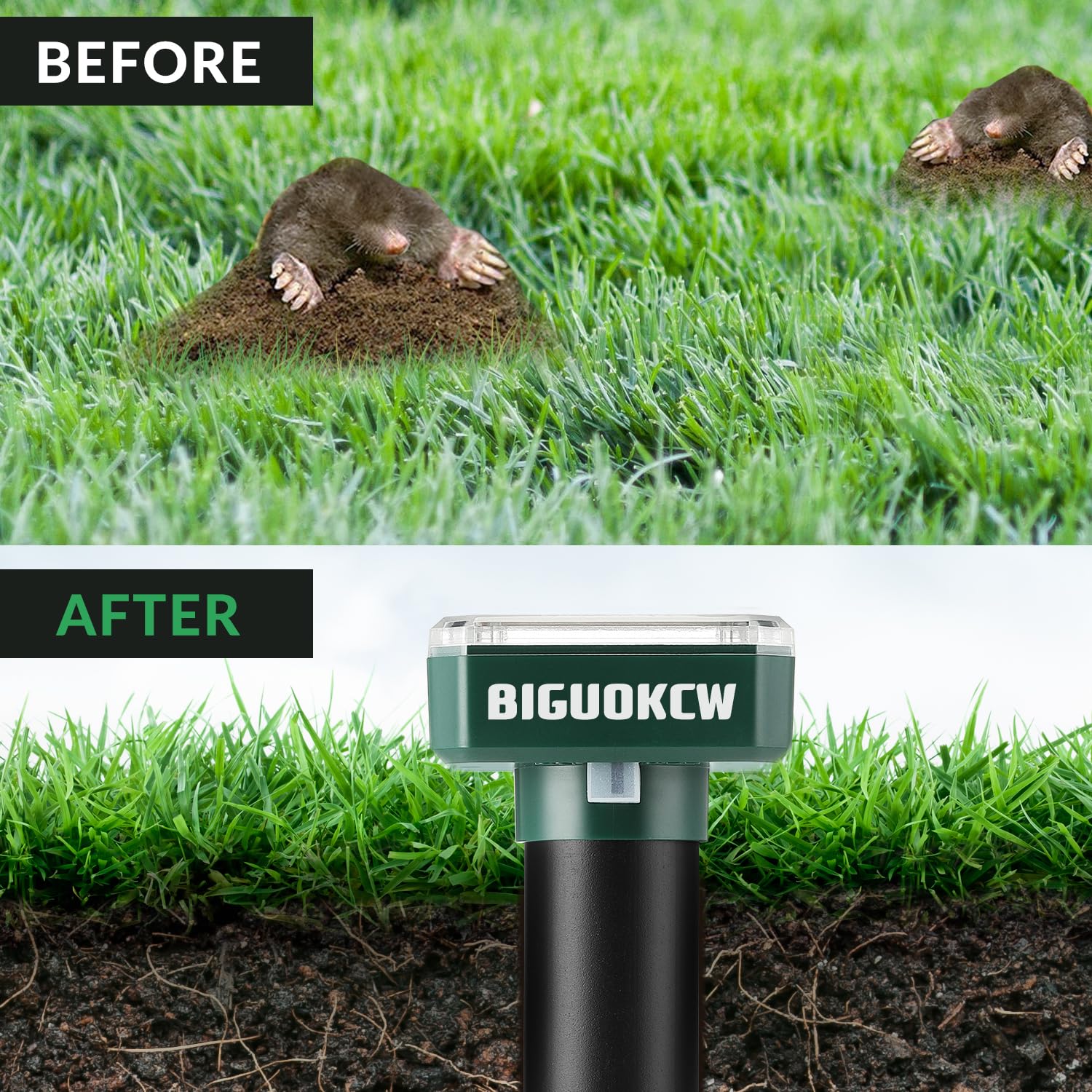 Mole Repellent Ultrasonic, 4 Pack Outdoor Rodent and Groundhog Repellent for Yard, Gopher, Vole, Groundhog, and Chipmunk Deterrent, Solar Snake Ultrasonic