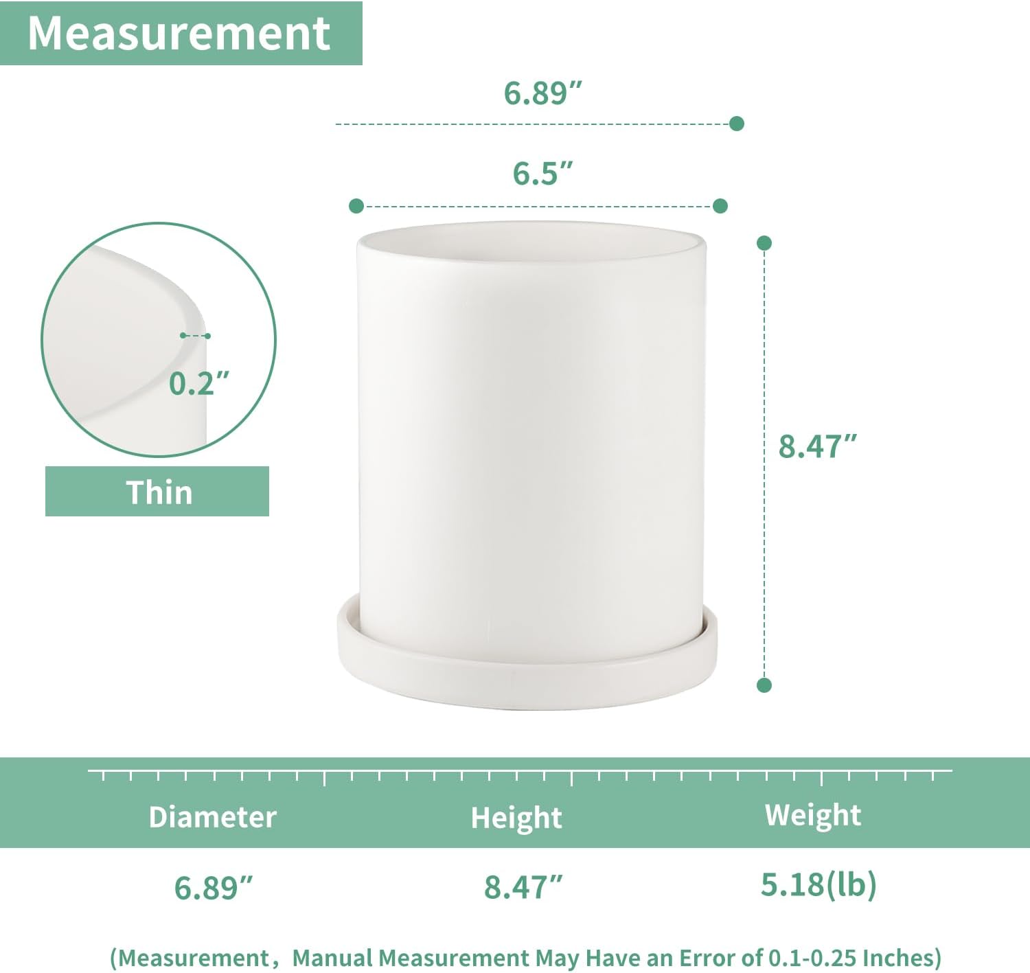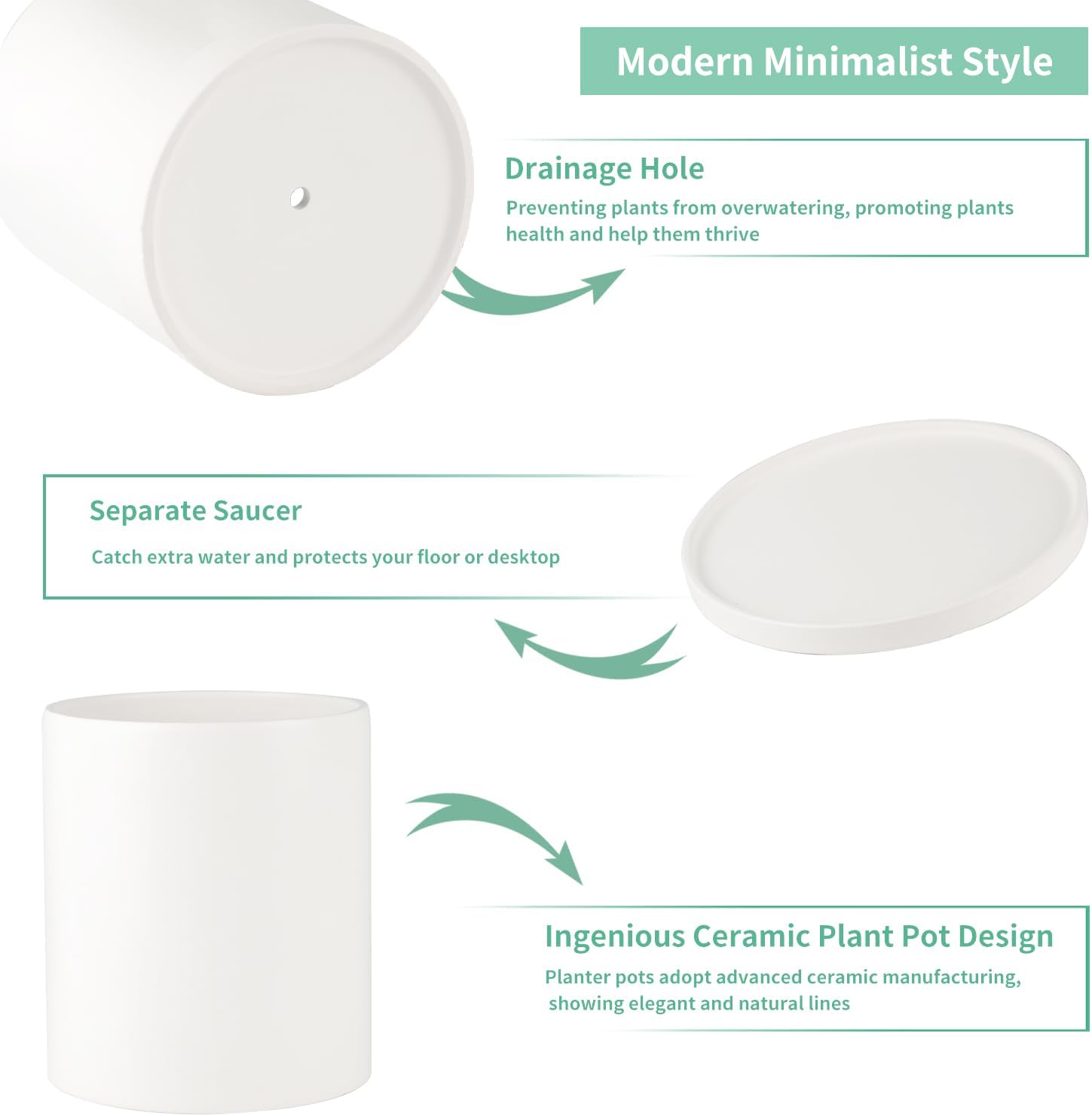 Mozing Ceramic Plant Pots (Small Frosted Surface) 6.89"X8.47"